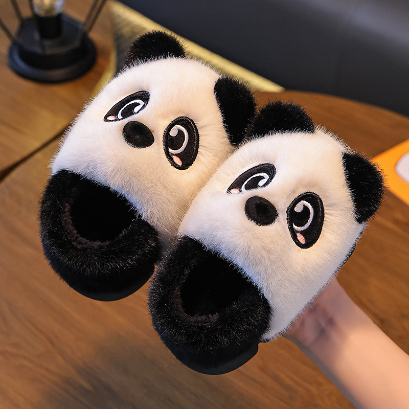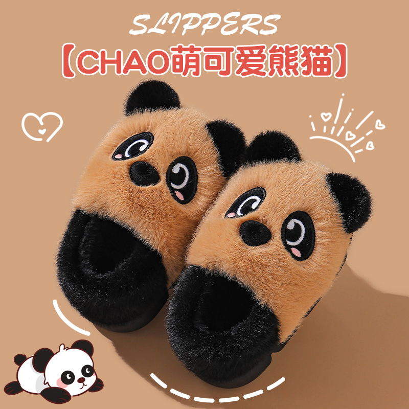 包跟宝宝棉鞋 男女童亲子防滑室内居家可爱熊猫拖鞋 儿童棉拖鞋 冬季