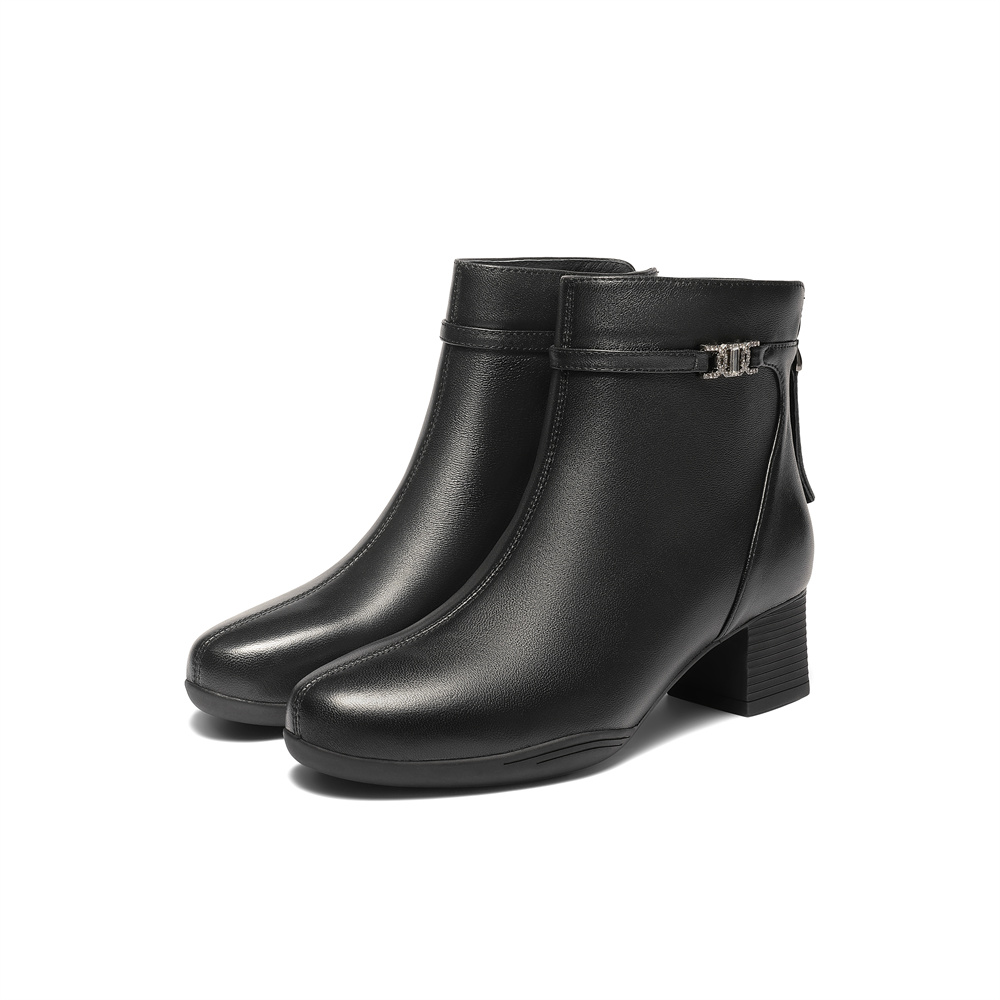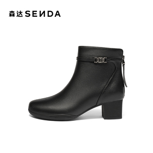 气质粗高跟女靴子XTH01DD5 商场同款 森达超软羊皮短靴2025冬季 新款