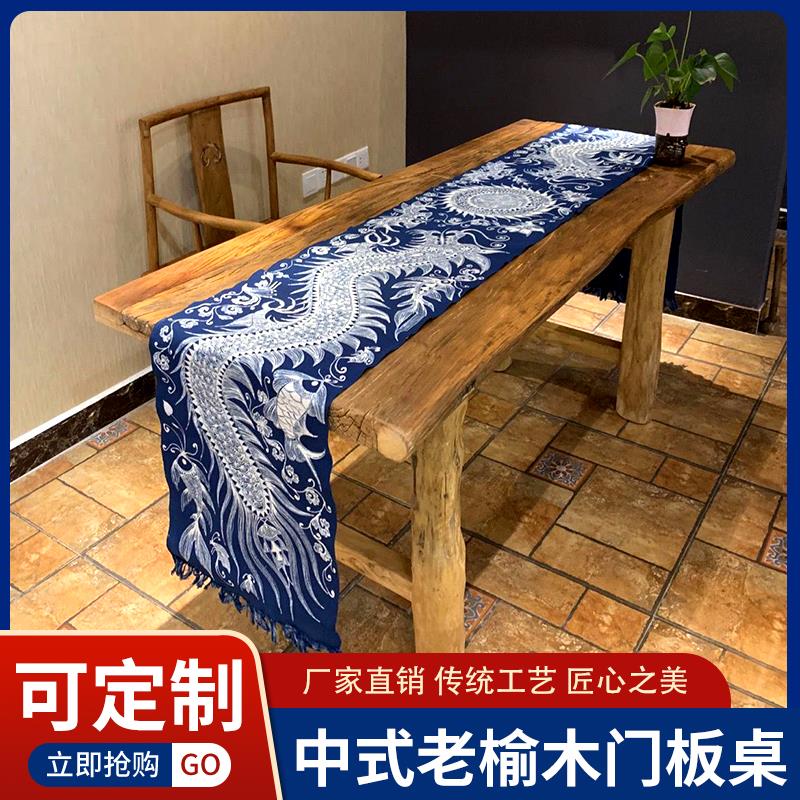 老榆木茶桌复古旧门板木板实木榆木门板漫咖啡桌吧台桌榆木桌面