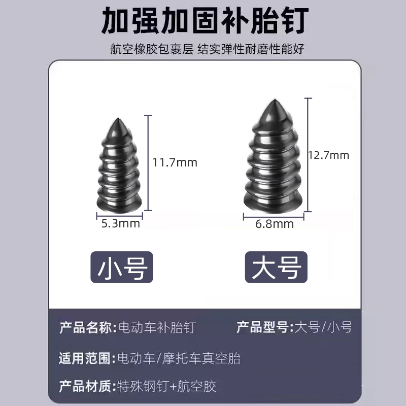 补胎胶钉真空胎专用快速补胎神器汽车电动车轮胎蘑菇钉橡胶钉工具