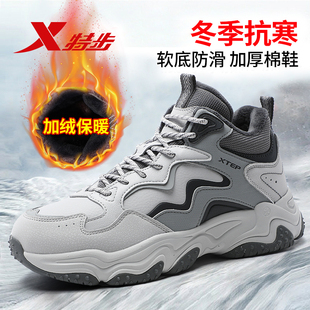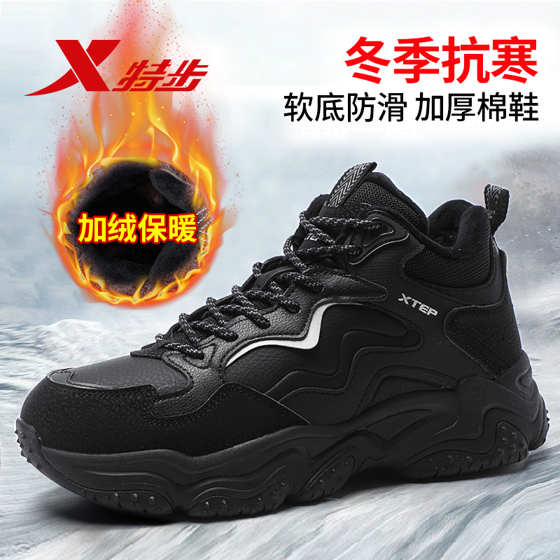 加绒高帮大棉鞋 皮面运动鞋 冬季 雪地靴东北防滑休闲鞋 新款 特步男鞋