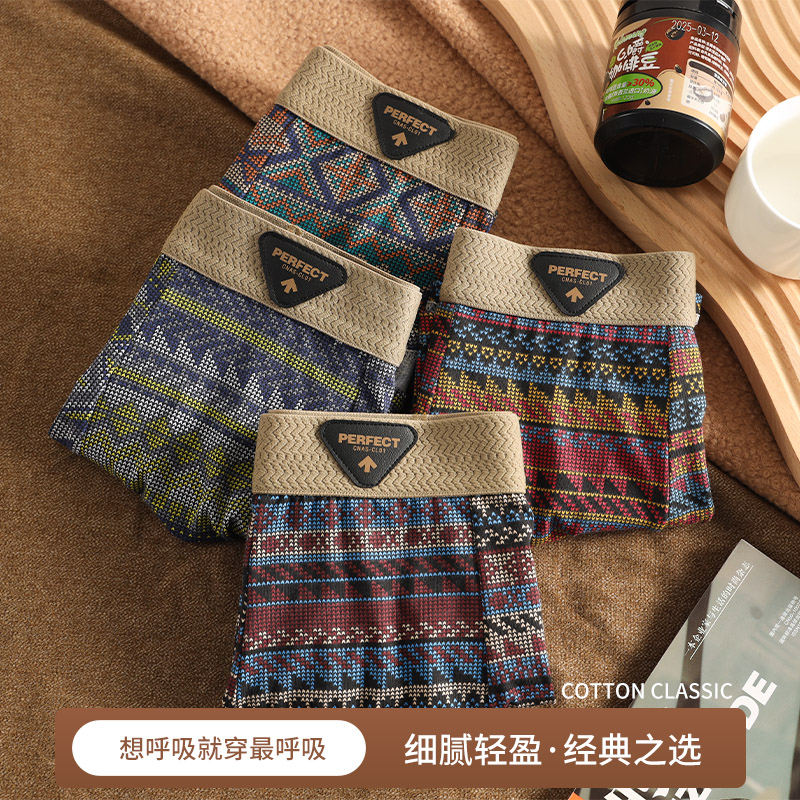 运动舒适透气中腰平角短裤 蕉内绒绒男士 纯棉青年个性 四角裤 内裤