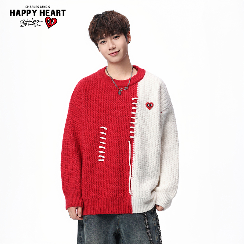 半拉链牛仔拼接解构V领针织衫 新品 打底毛衣 BEINGS2025AW秋季 ALL