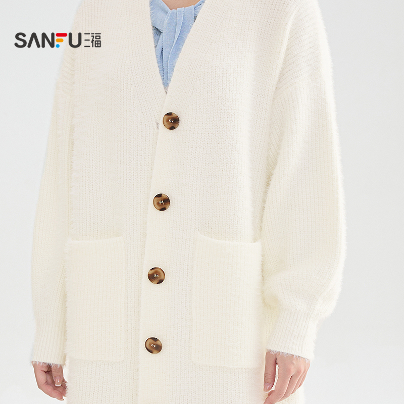 绞花肌理圆领毛衫 森柔 短款 女冬季 百搭叠穿打底上衣 森马针织开衫