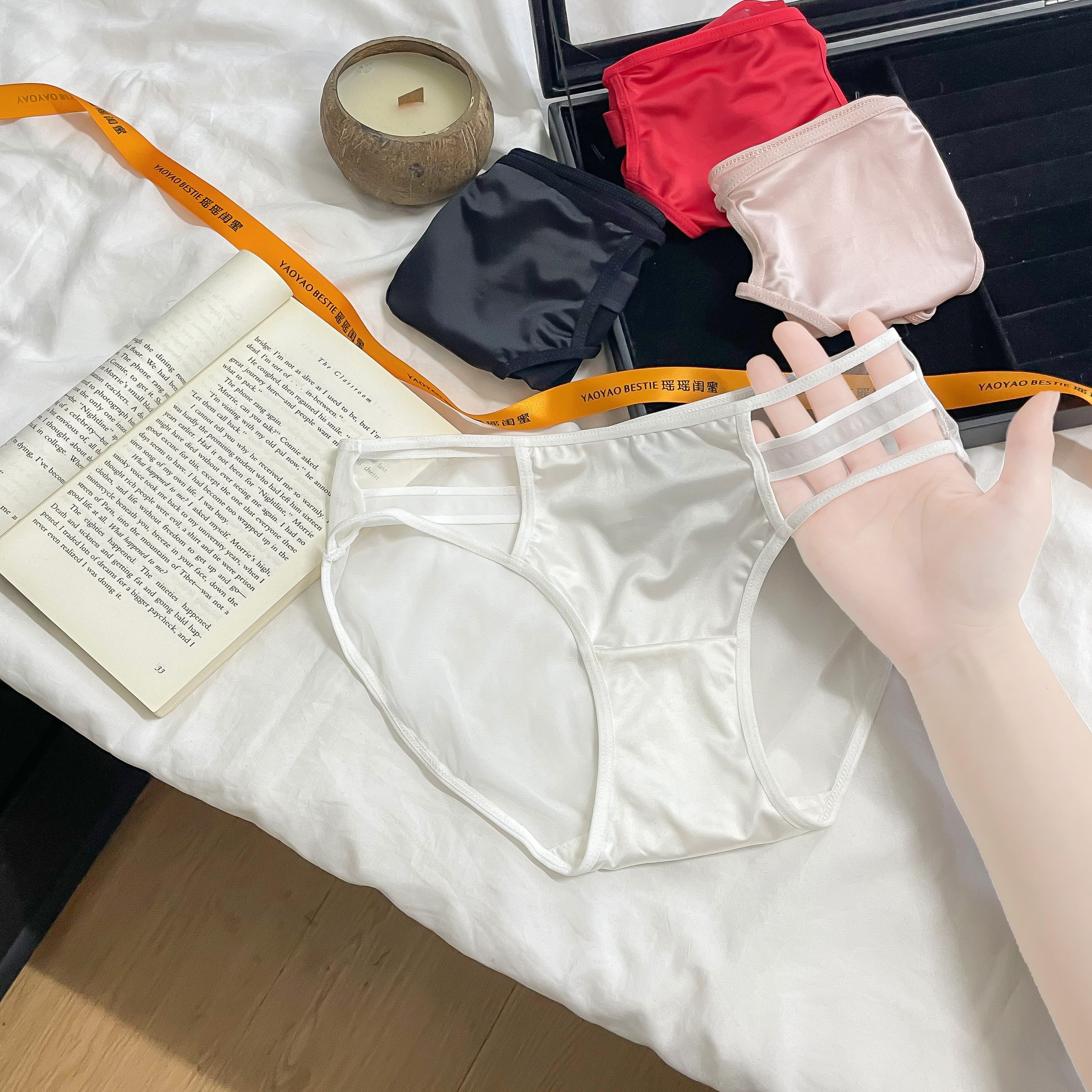 头 女性感蕾丝低腰三角裤 瑶瑶闺蜜法式 缎面女生纯欲镂空网纱内裤