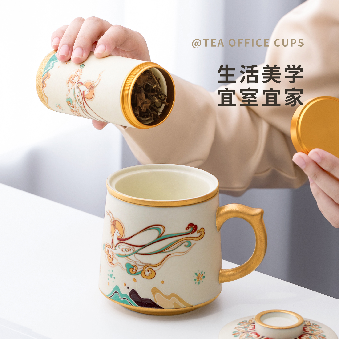 敦煌九色鹿陶瓷高档小号茶叶罐旅行便携高级感密封罐迷你储茶罐