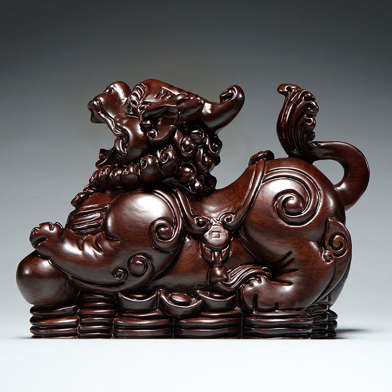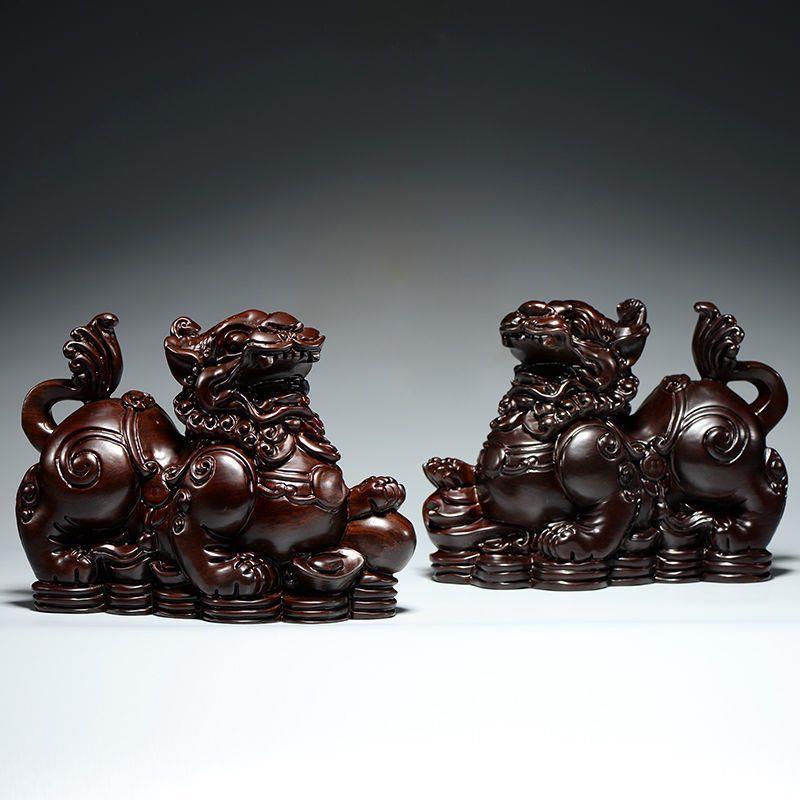 黑檀木雕貔貅摆件红木貔貅家居办公室玄关风水装 饰工艺品开业送礼