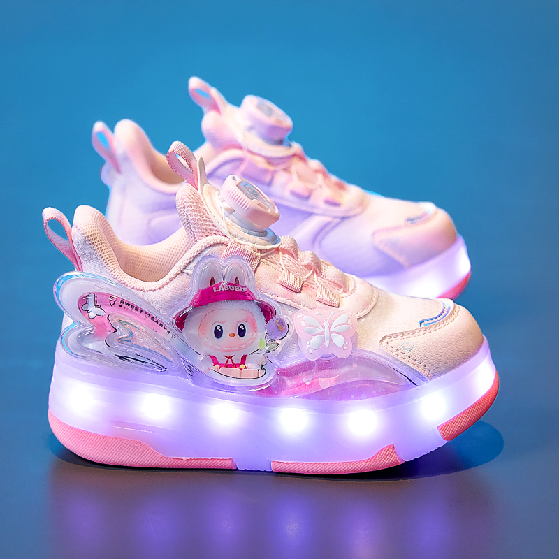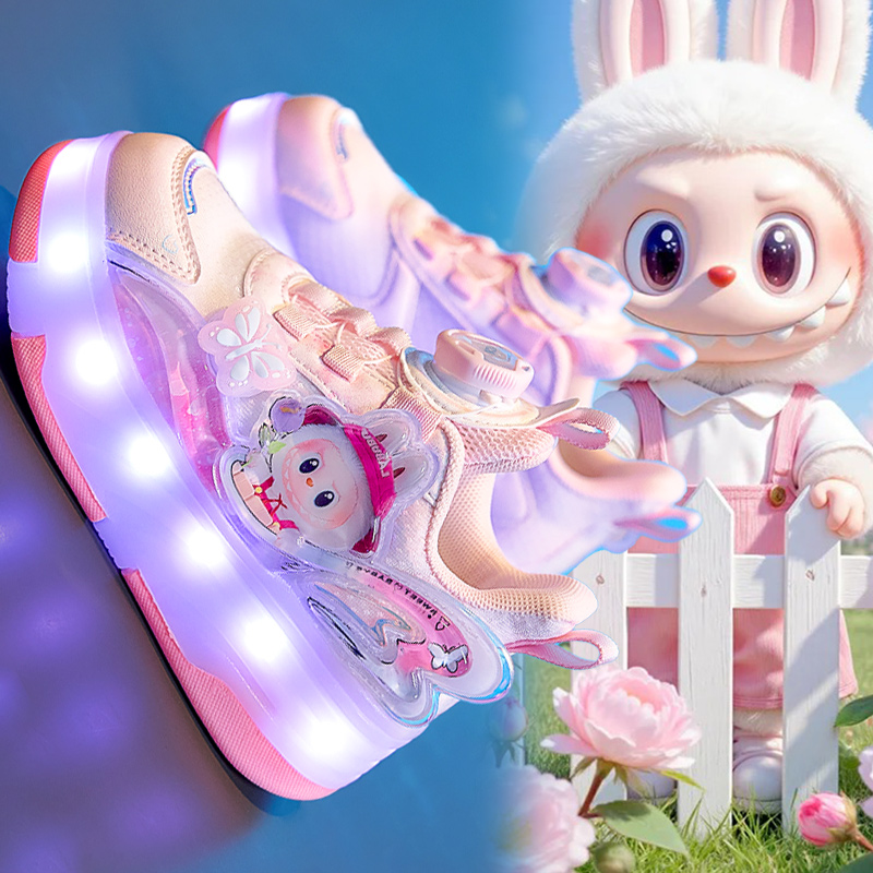 儿童四轮发光溜冰滑轮鞋 2025新款 女孩可收缩 秋季 拉布布女童暴走鞋