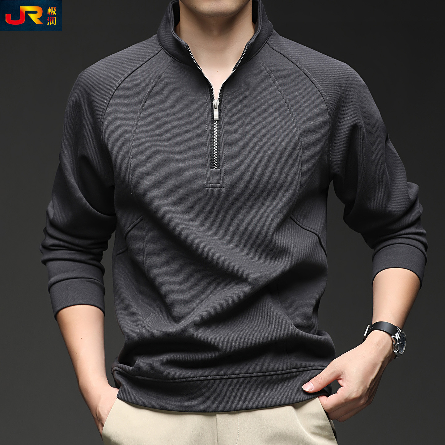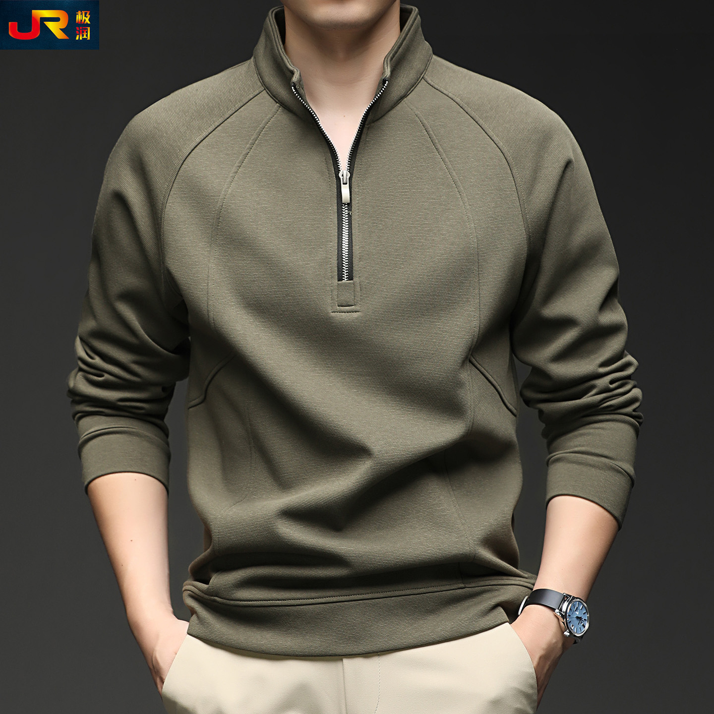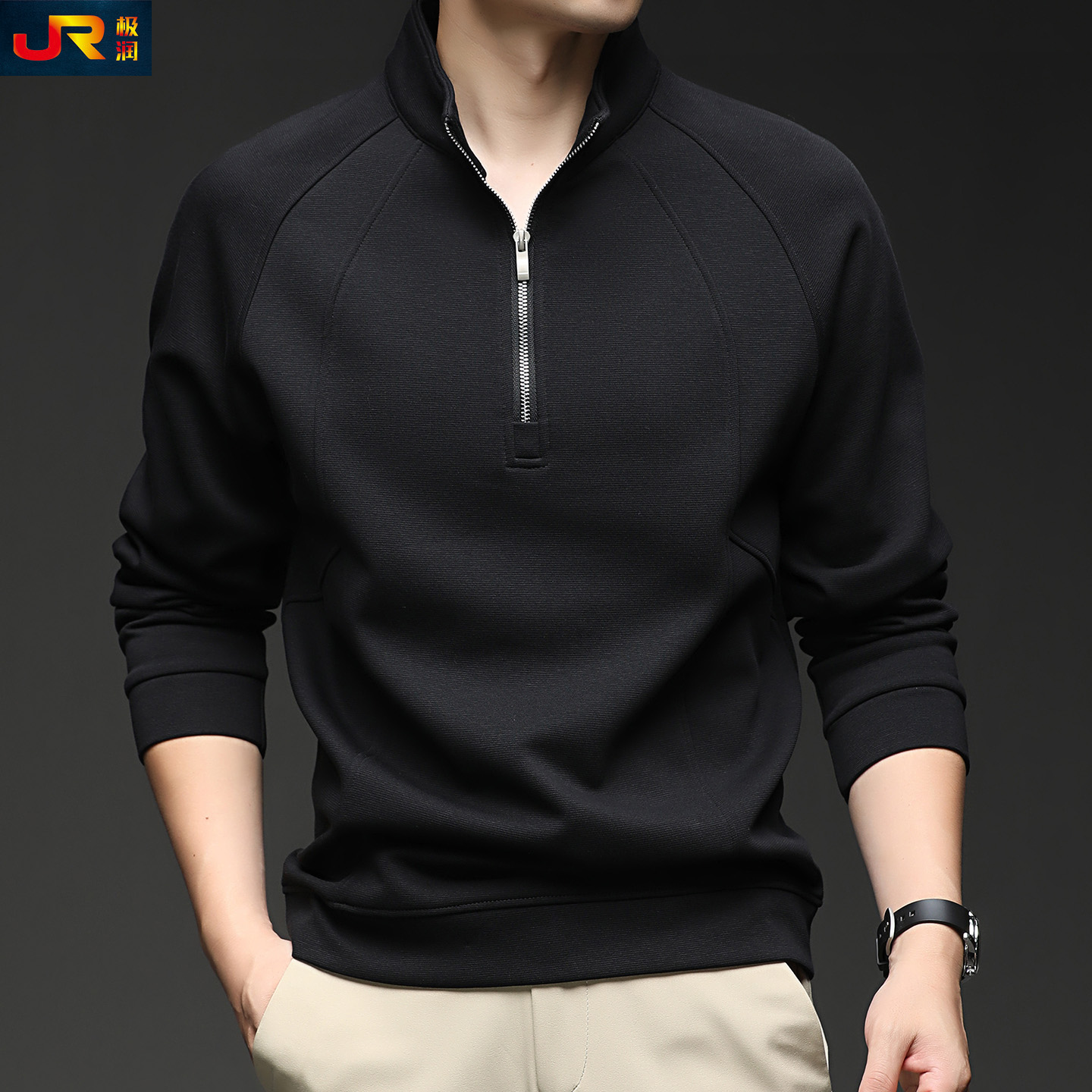 半拉链立领卫衣潮流纯色长袖 新款 棉T恤中青年帅气上衣服 秋季 男士