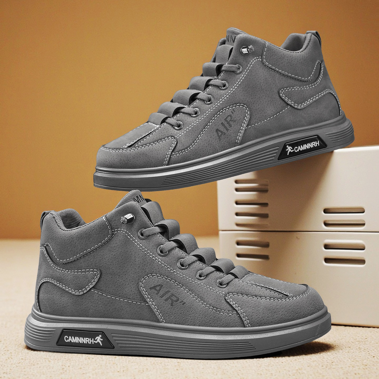 保暖运动2025年皮面休闲鞋 男款 厚底增高 灰色百搭高帮板鞋 乔丹秋季