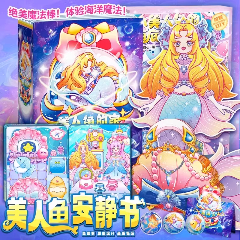 贴纸 爱莎6磁力贴安静本磁吸冰雪奇缘换装 美人鱼安静书新款 女孩子玩具六一儿童节礼物diy手工艾莎公主小屋换装