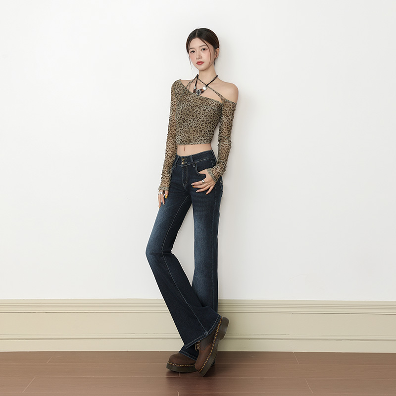 直筒百搭拖地喇叭裤 复古低腰微喇辣妹修身 美式 罗蒙女士牛仔裤