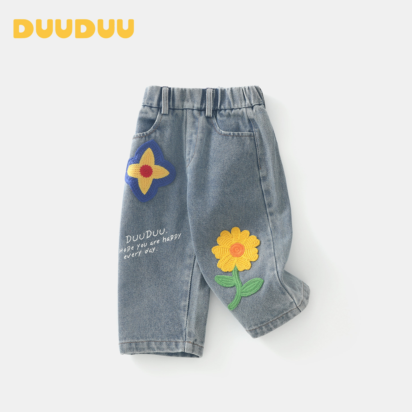 新品 春夏裤 优选 毛边牛仔长裤 子儿童阔腿裤 马克华菲女童喇叭裤