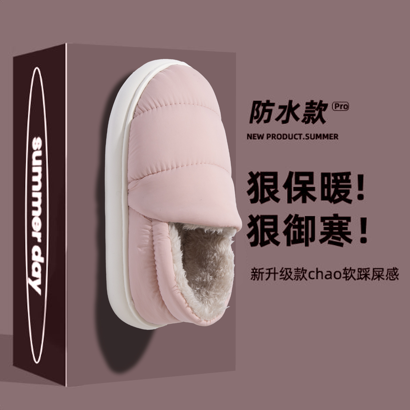 2025可外穿毛绒室内家居保暖防水防滑包跟月子鞋 秋冬季 女款 棉拖鞋