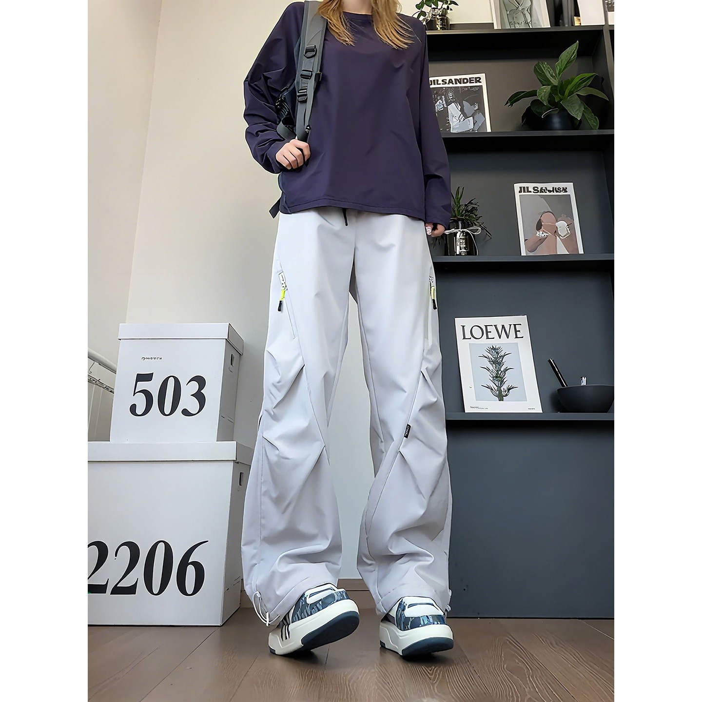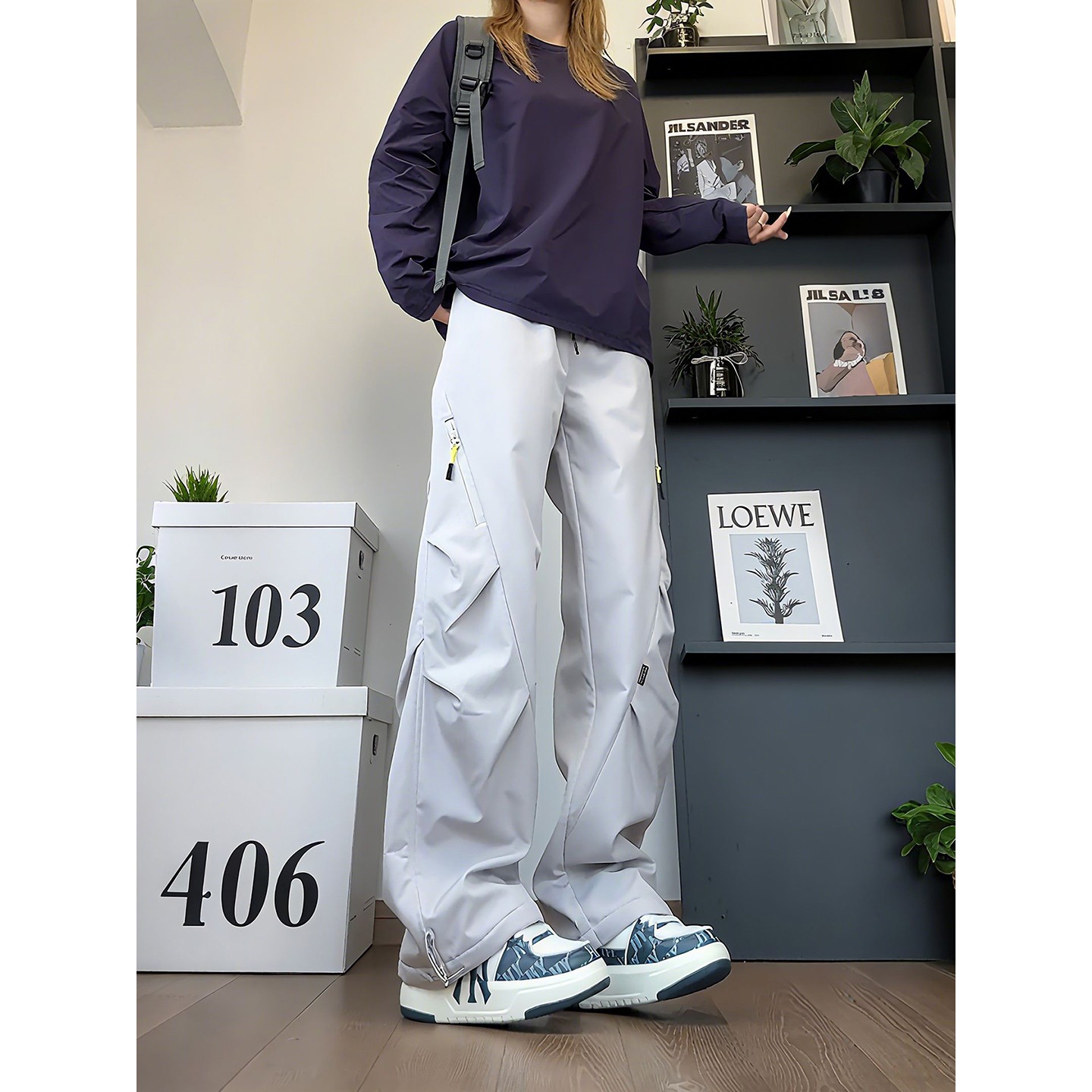 户外徒步登山裤 米白色三防加绒冲锋裤 裤 褶皱直筒工装 男女秋冬美式