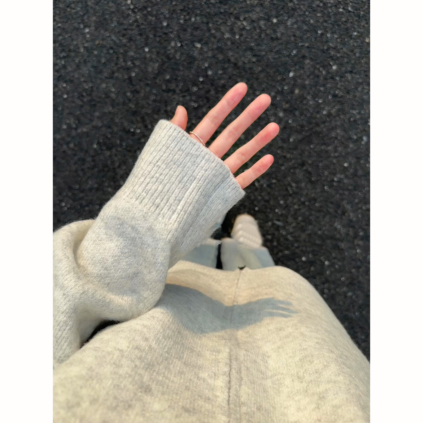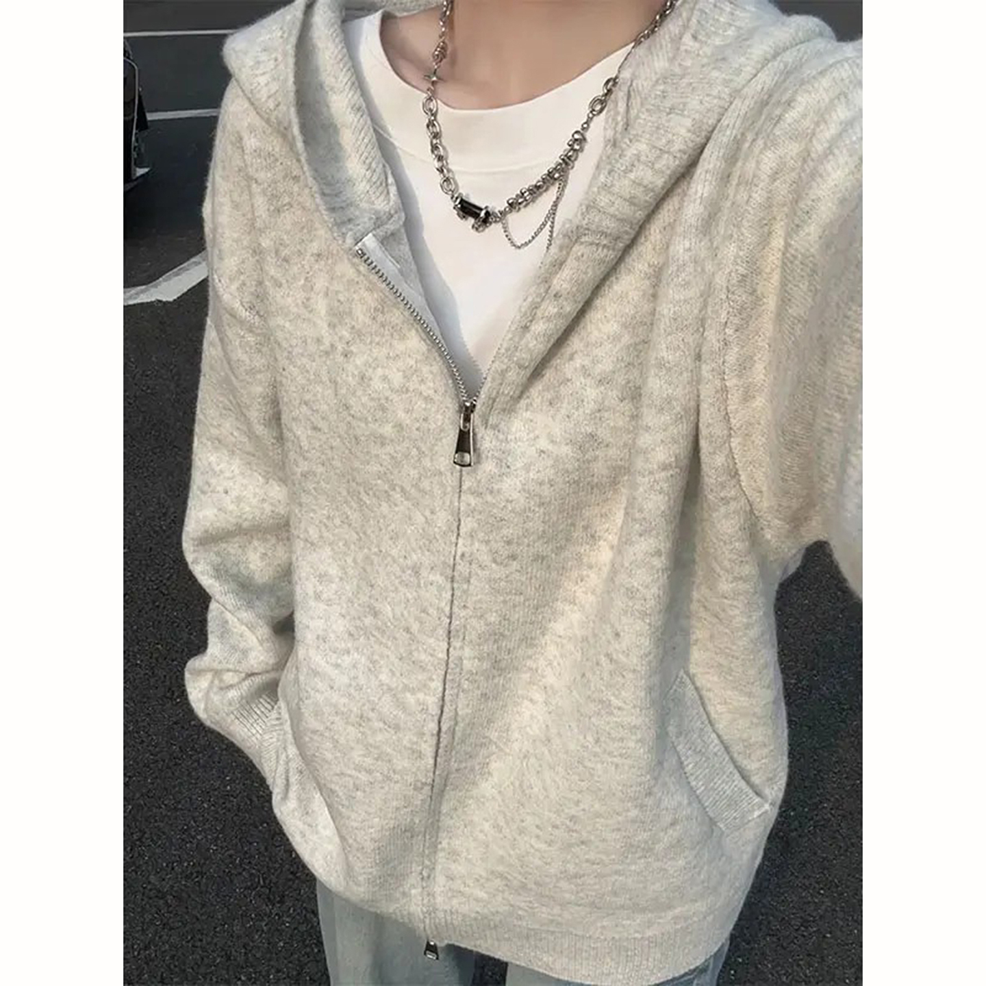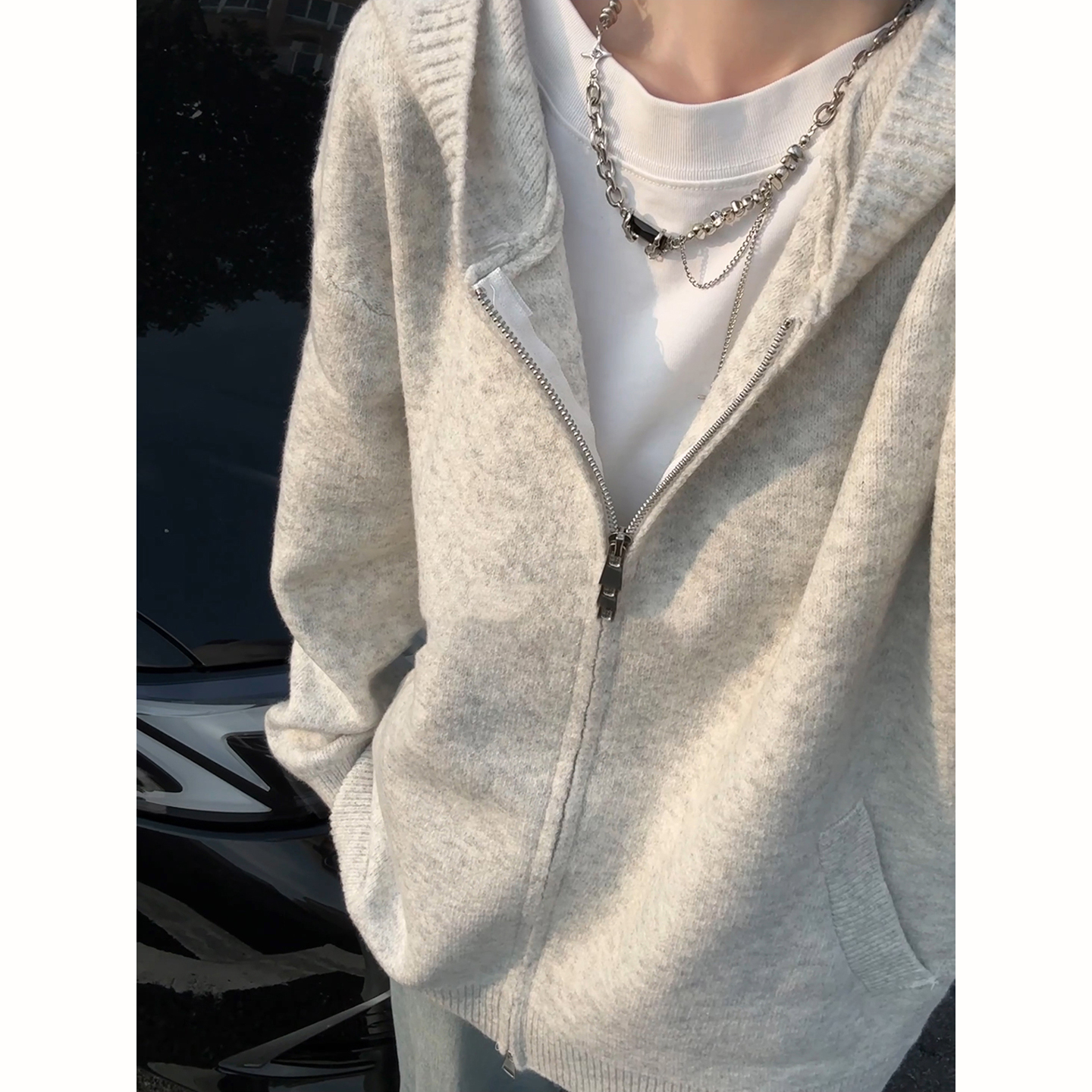 白花灰美式 休闲慵懒风毛衣高级感情侣宽松连帽卫衣 拉链毛衣男秋季