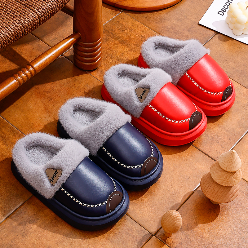 EVA儿童棉拖鞋 女亲子居家 男童中大童PU皮面防水防滑加绒包跟棉鞋