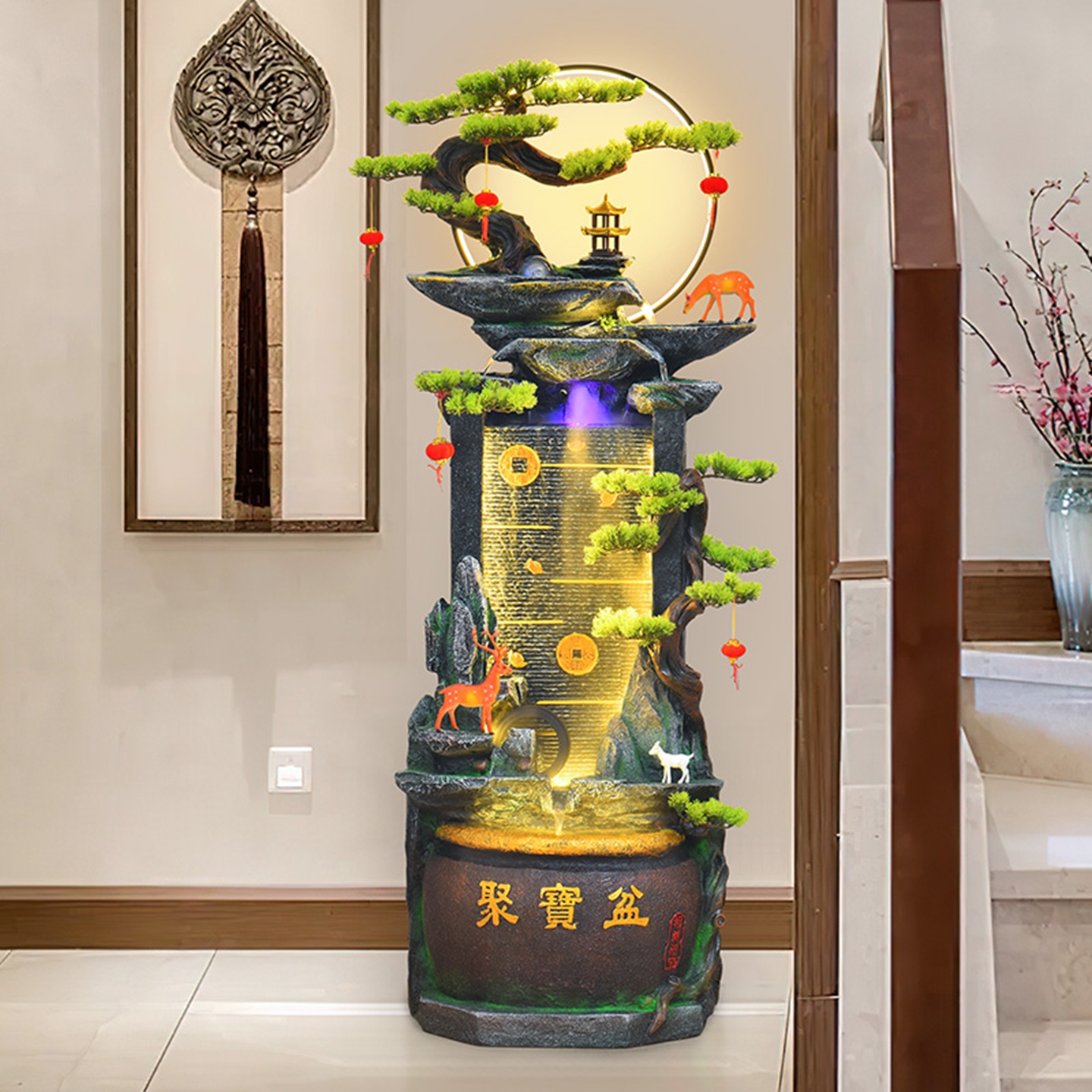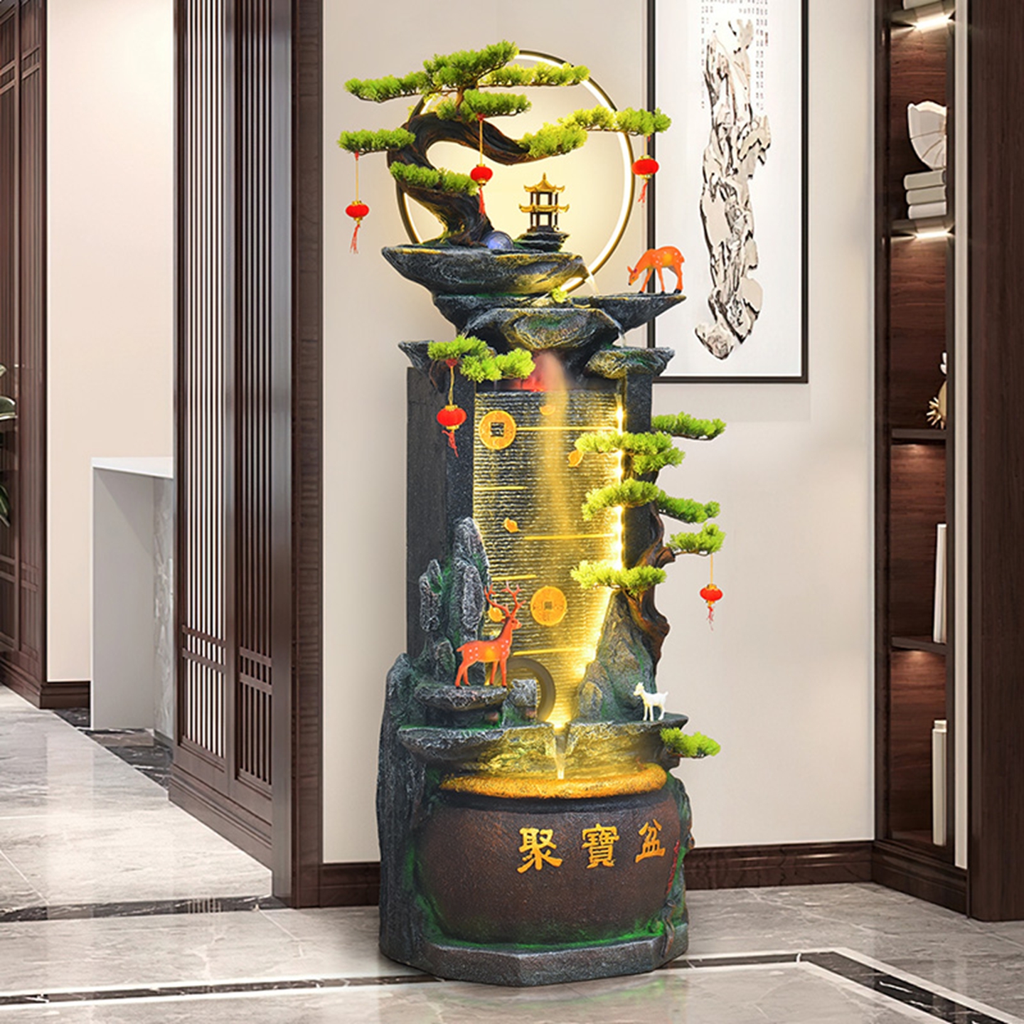 高山流水摆件循环水景客厅玄关风水轮招财办公室喷泉乔迁开业礼品