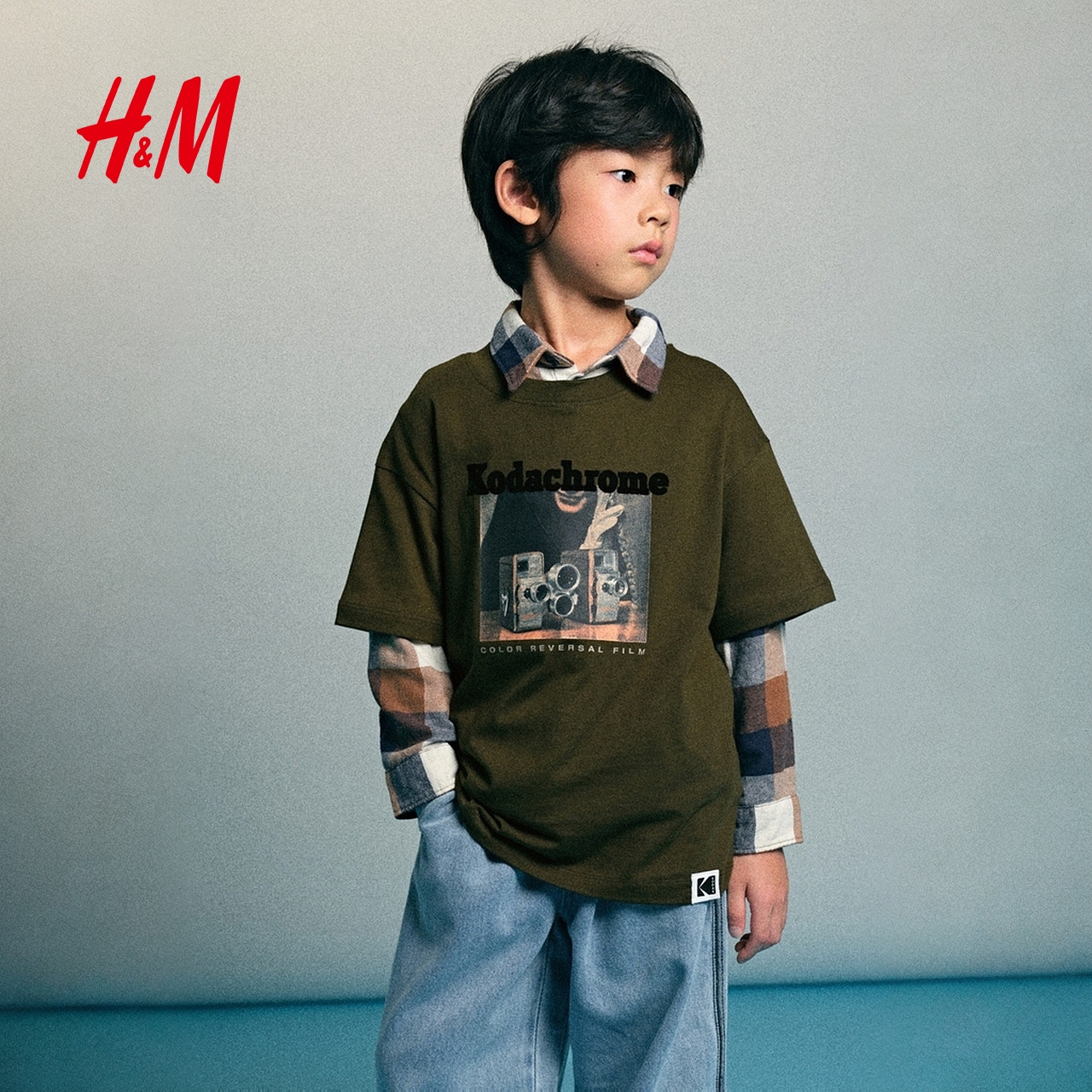 新款 儿童男童女童T恤2025秋季 HM童装 印花图案T恤1315353 柯达
