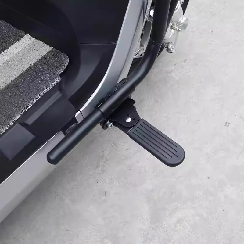 护杠脚踏板加宽防滑摩托车改装 免打孔 配件折叠脚蹬外卖电动车加装
