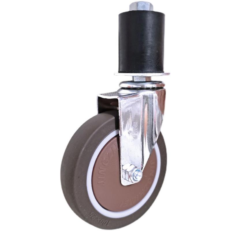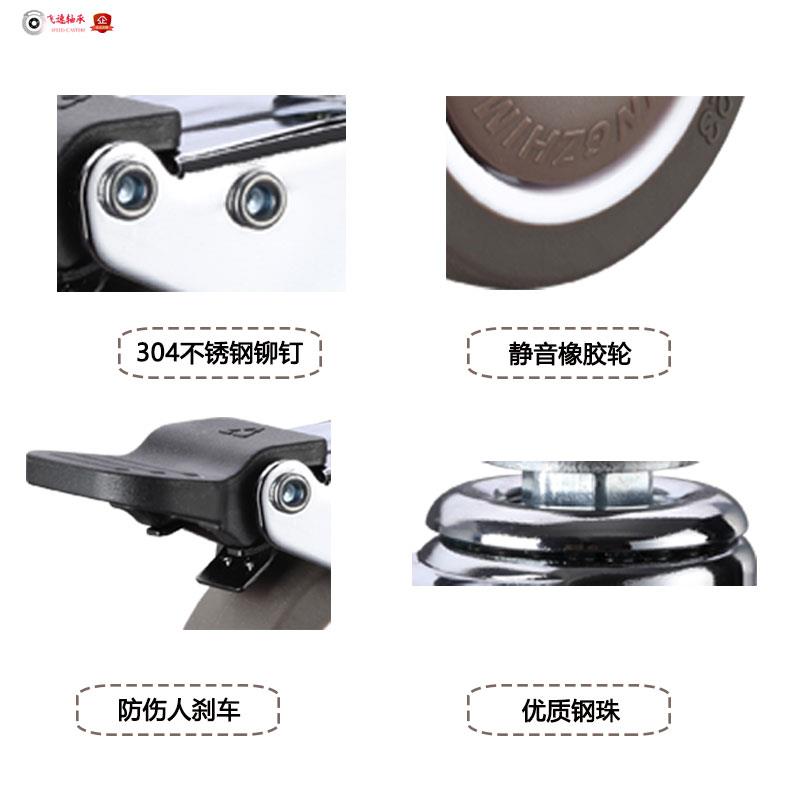 4寸万向轮脚轮刹车轮子滚滑轮轱辘转向橡胶套不锈钢圆管静音轴承