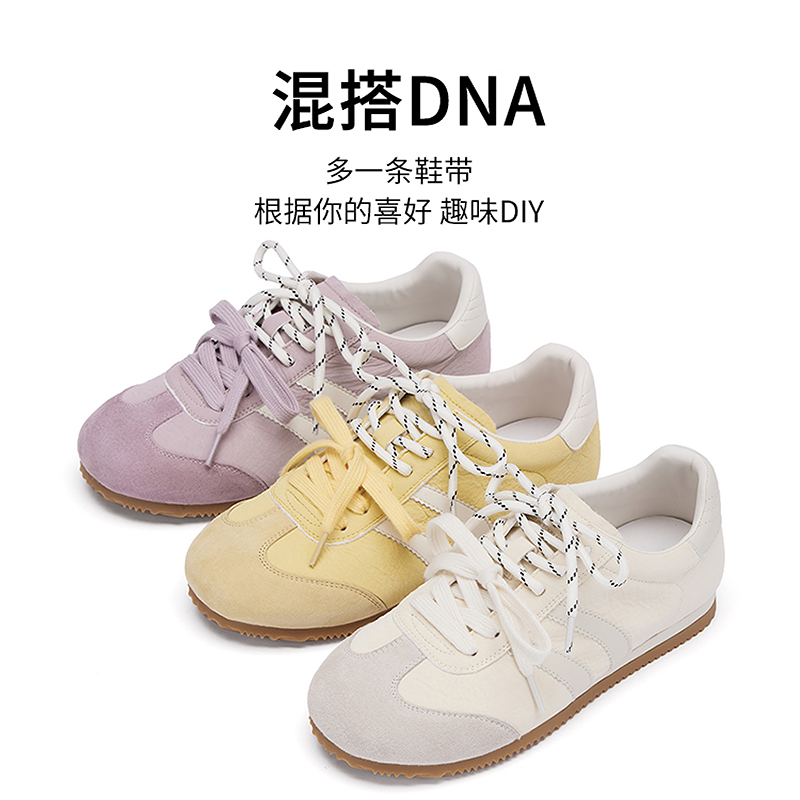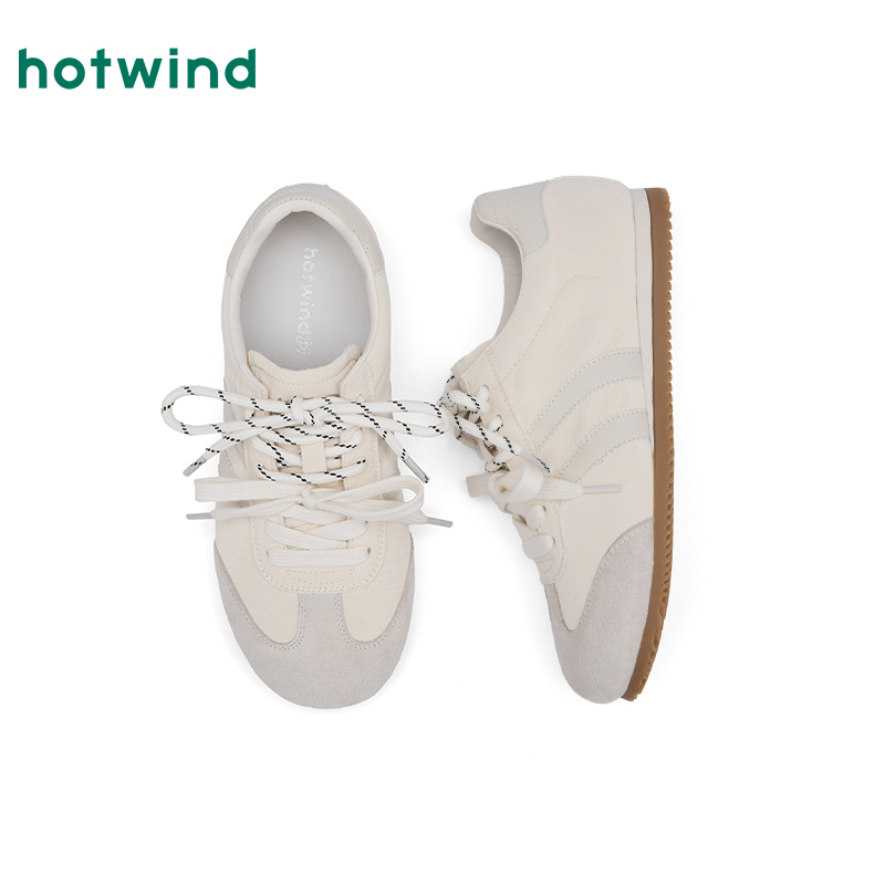 女款 子轻便通勤女鞋 2025年秋季 米色百搭休闲鞋 新款 热风平底德训鞋