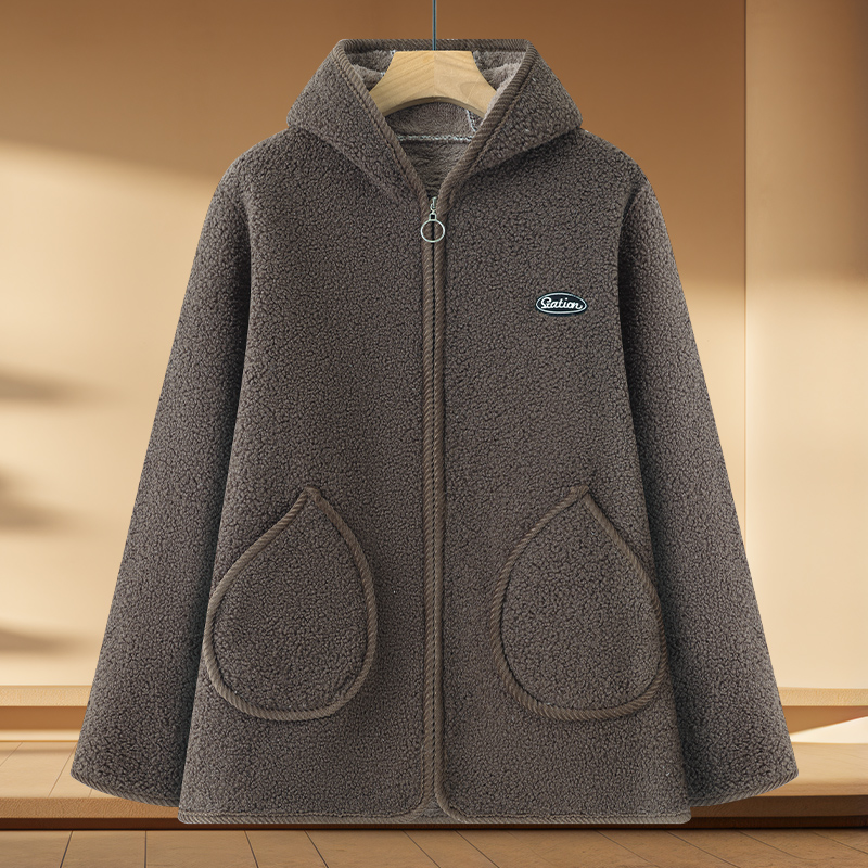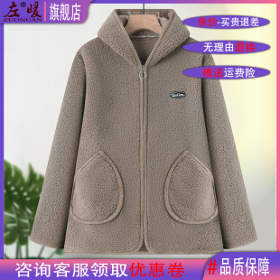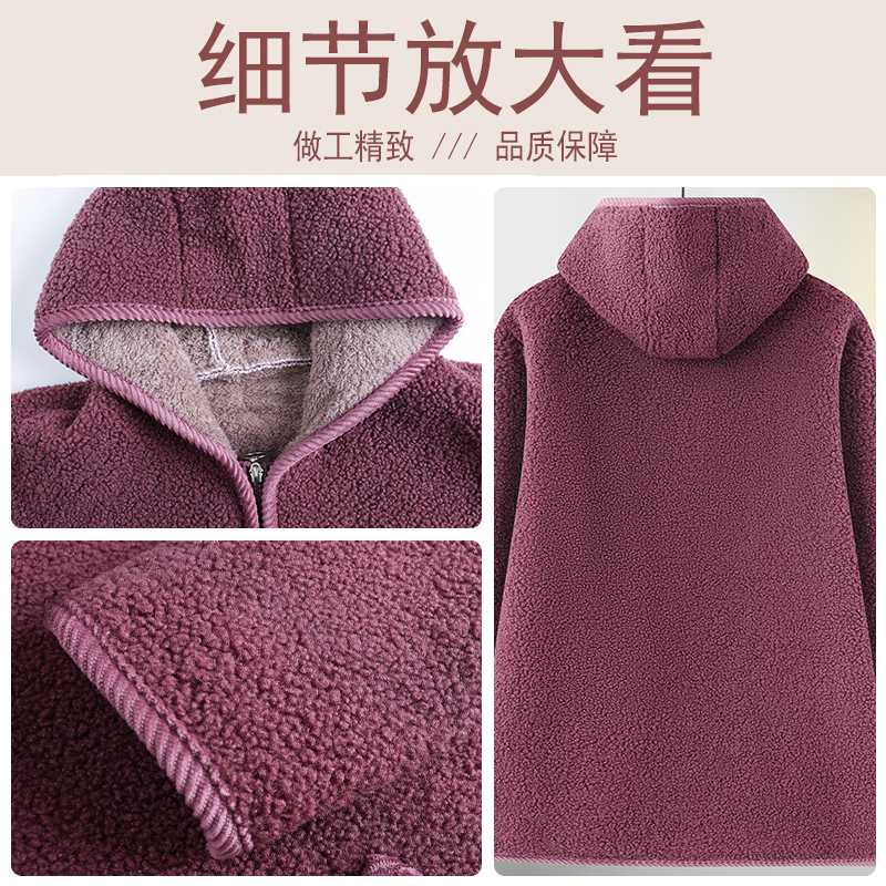 中老年人秋冬摇粒绒外套女胖妈妈加肥大码 连帽上衣服宽松保暖棉袄