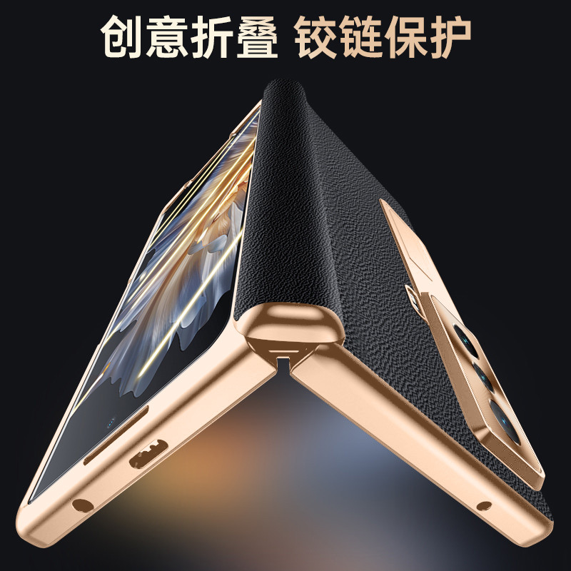 适用三星GalaxyZFold5手机壳w23折叠屏fold4电镀真皮纳帕纹铰链保护套fold7全包防摔壳膜一体fold6磁吸外壳