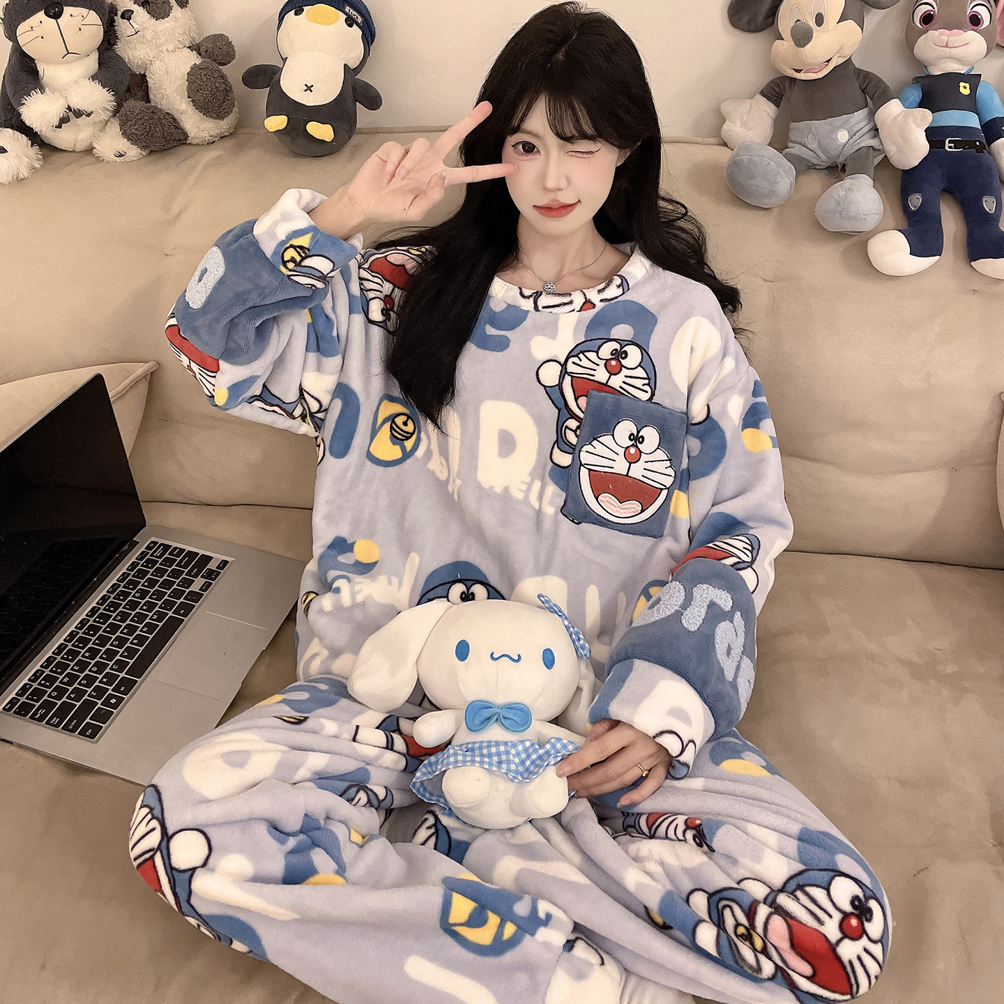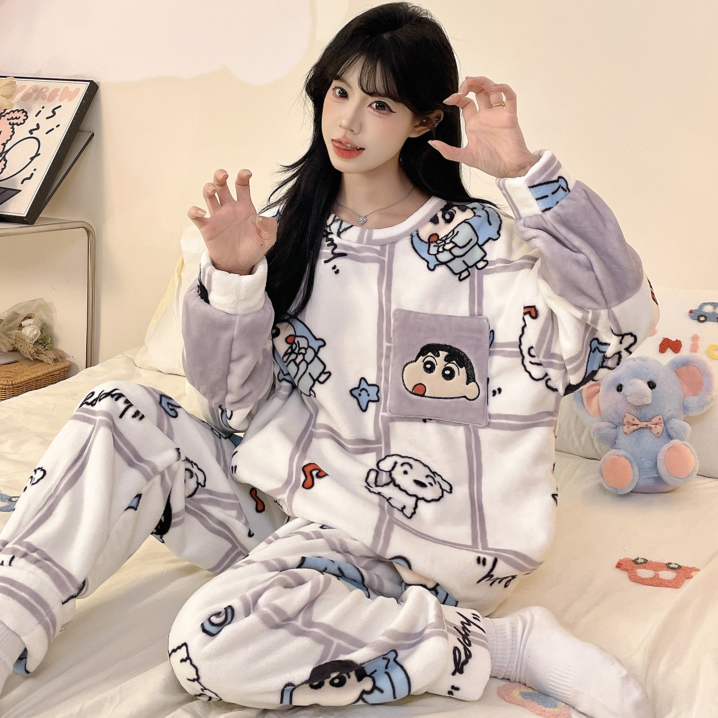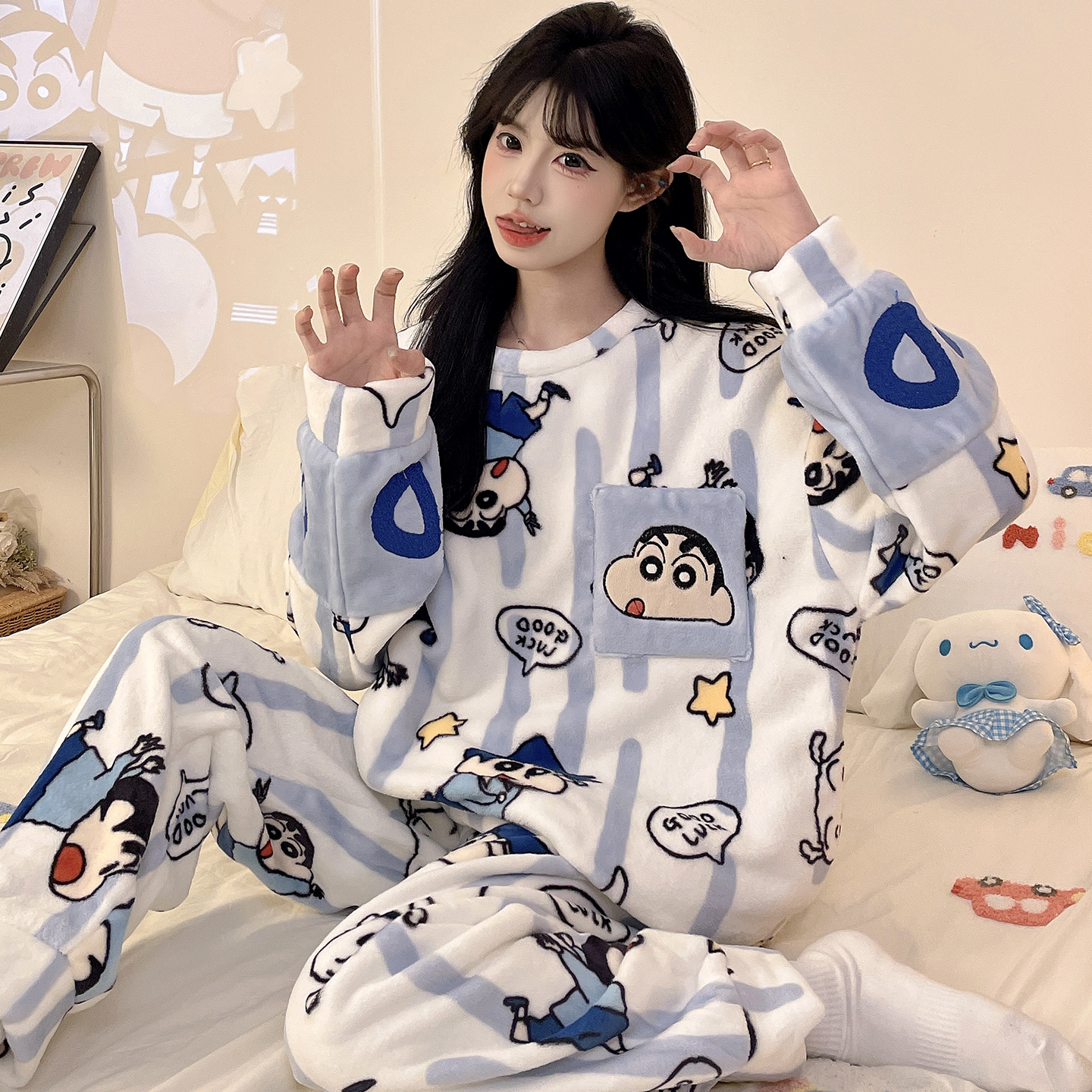法兰绒春秋天套装 秋冬季 珊瑚绒睡衣女冬加厚加绒家居服2025年新款