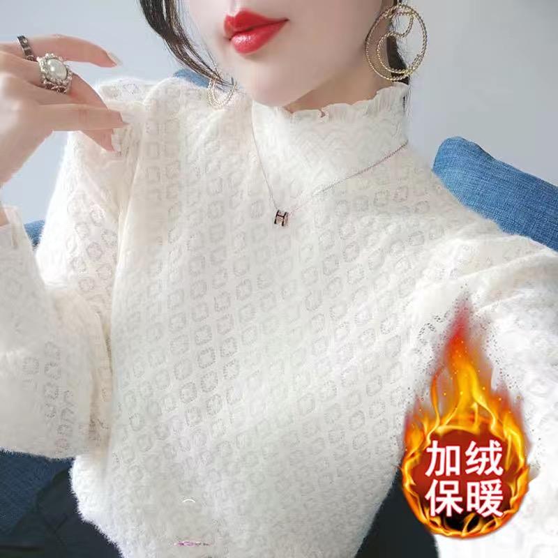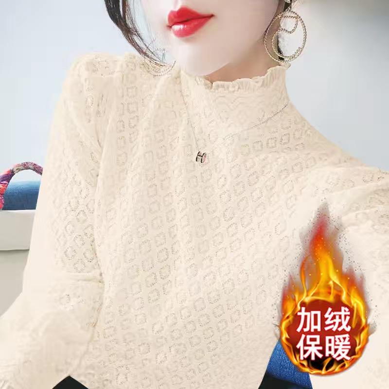 半高领洋气小衫 秋冬打底内搭薄款 时尚 蕾丝衫 1007k 加绒2025新款