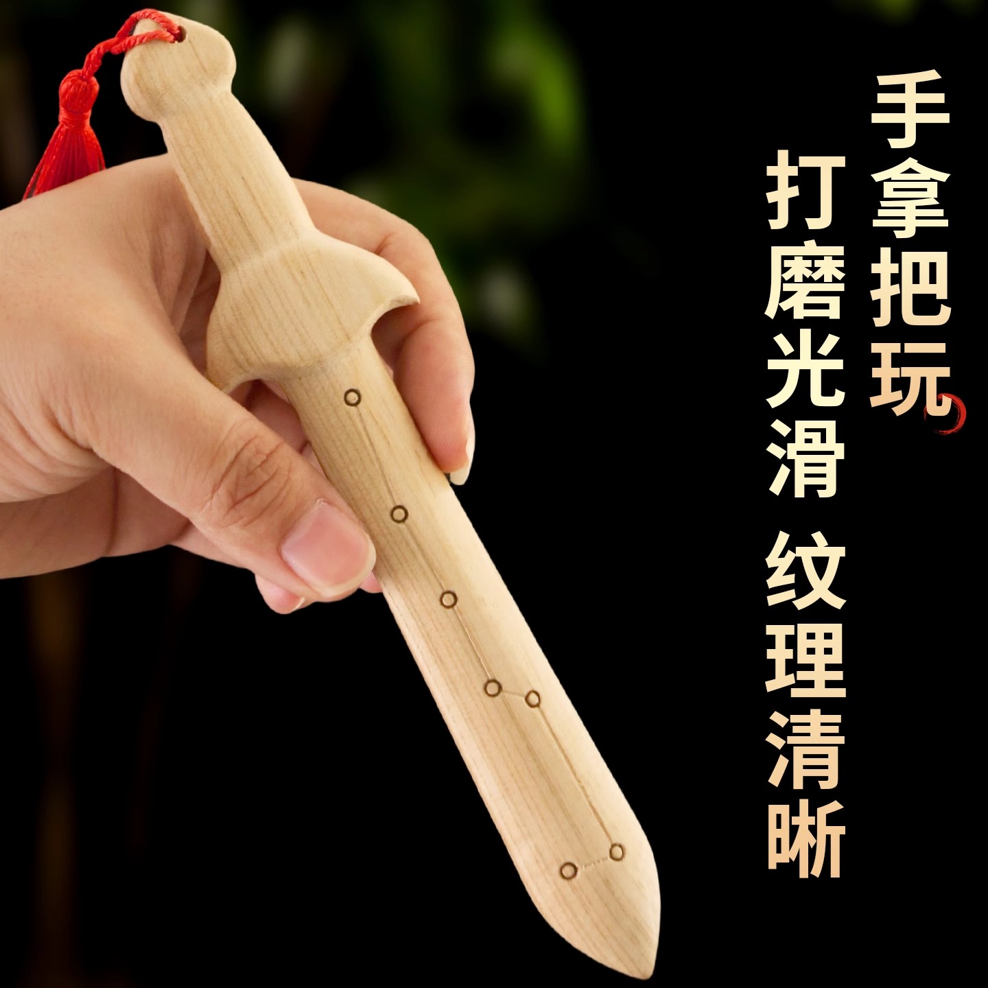 卧室原木剑桃木平安摆件挂件手工小短剑一体无漆实木剑宝剑木雕
