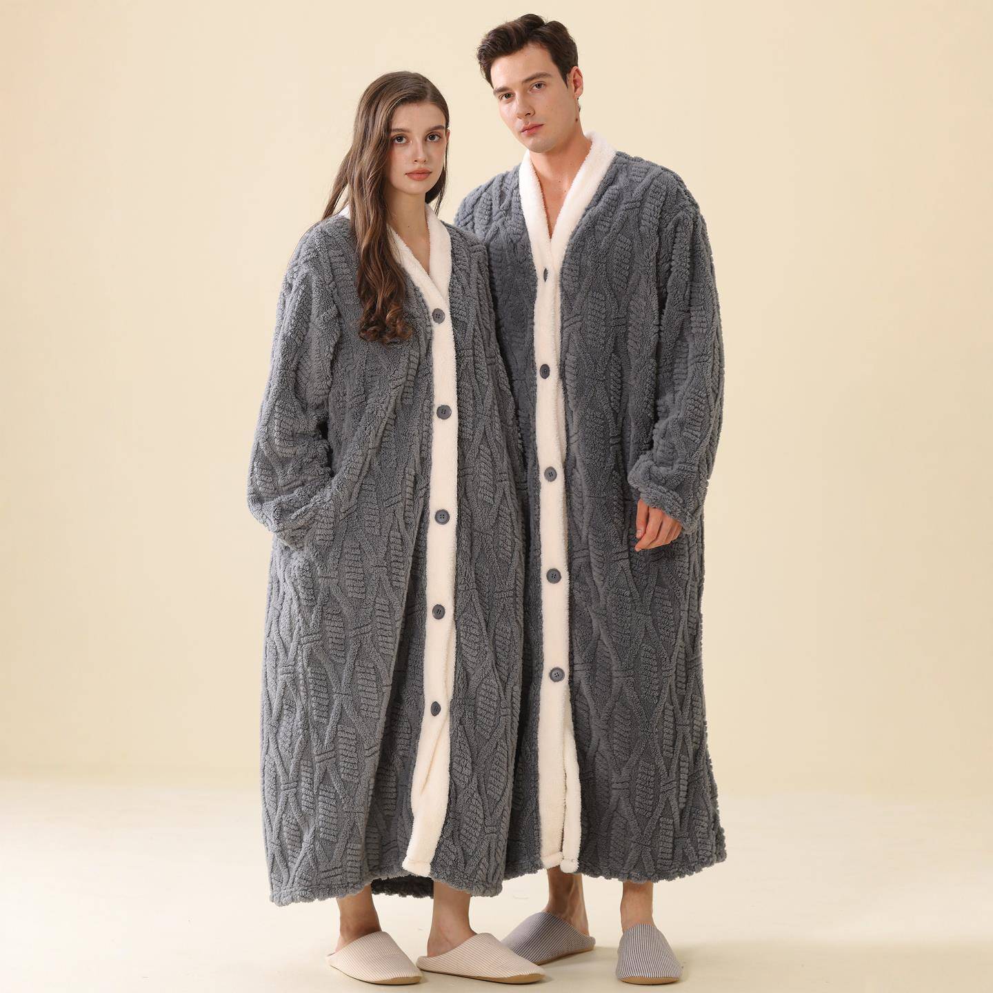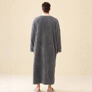 系扣子2025新款 加长款 家居服保暖珊瑚绒1009c 秋冬季 秋冬睡袍男士