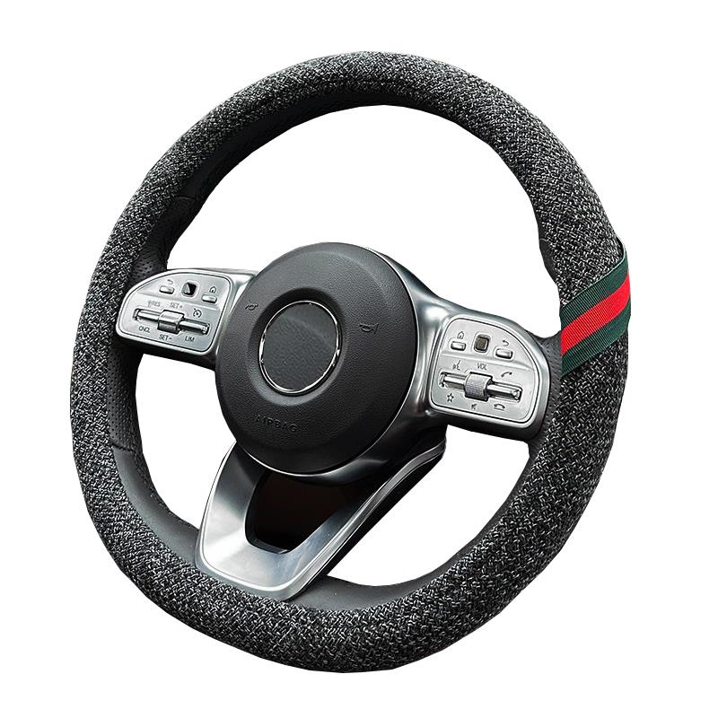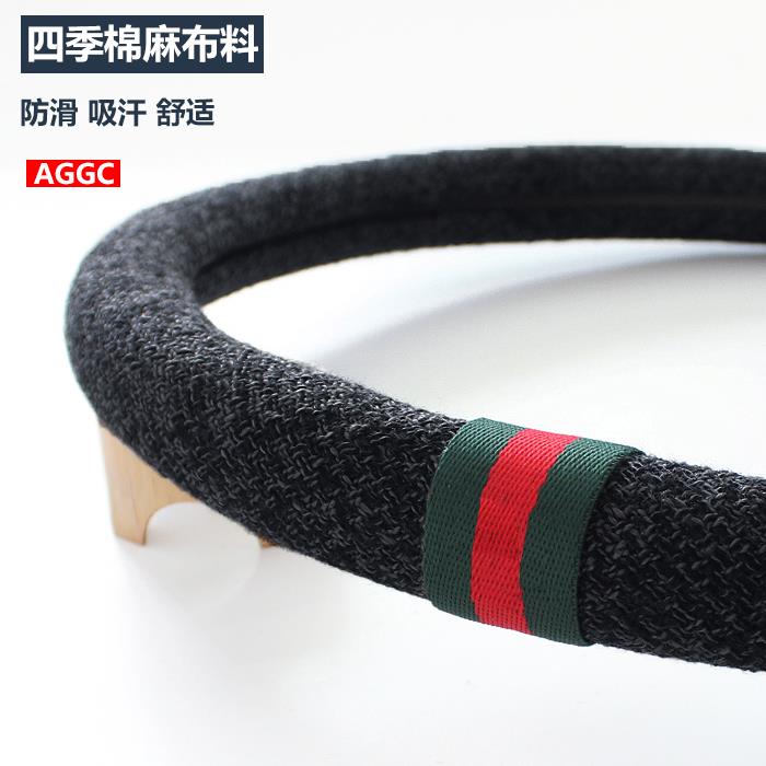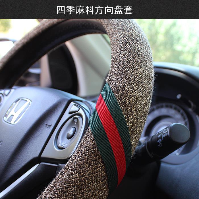 爱程四季 彩条亚麻防滑适用D字型平底薄吸汗透气汽车方向盘套 夏季
