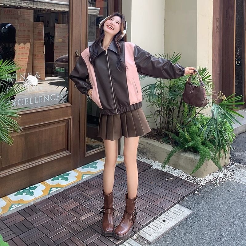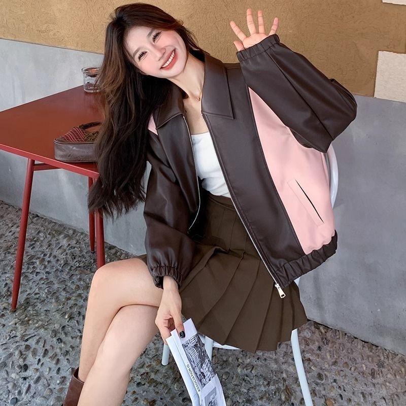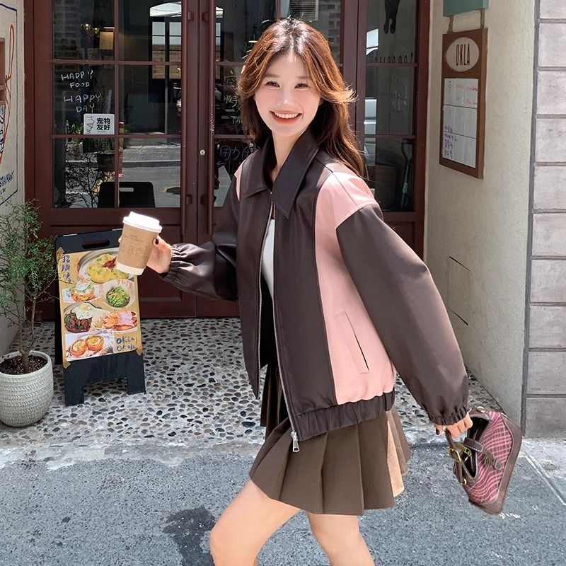 上衣男女 复古翻领夹克格子拼接短外套潮休闲工装 Achock官方店