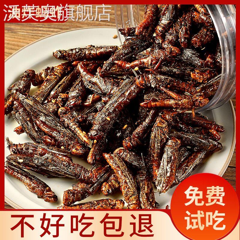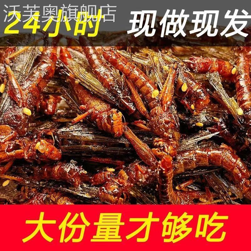 大份量油炸蚂蚱即食新鲜香辣蝗虫下酒菜零食香辣昆虫孜然开袋即食