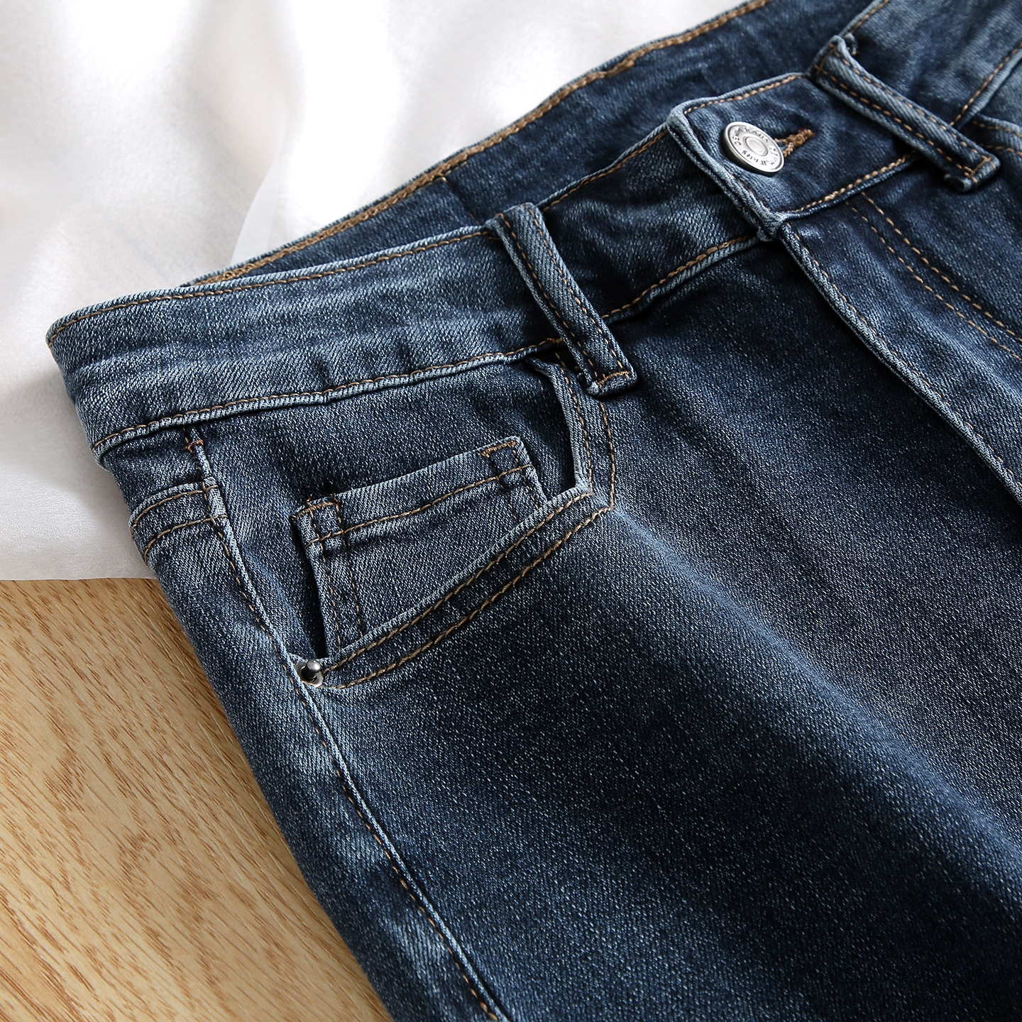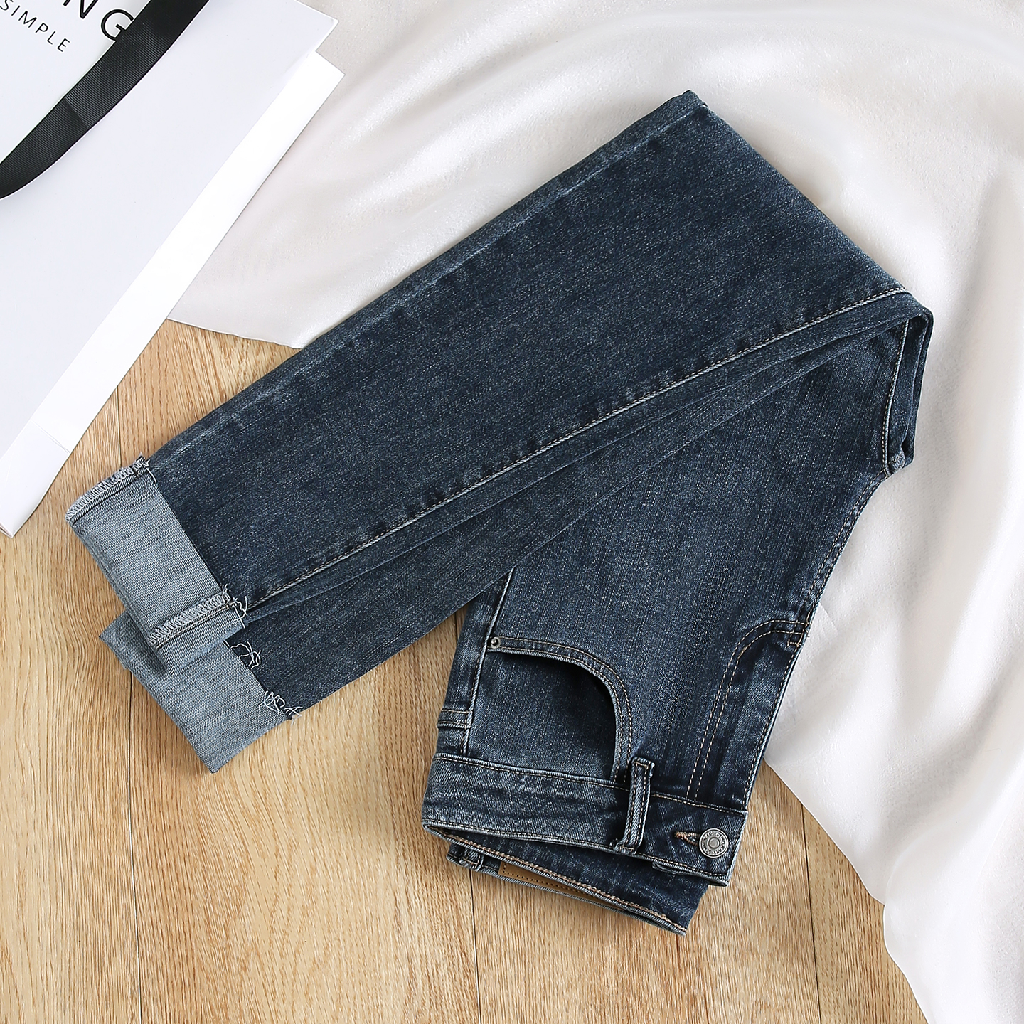 毛边紧身显瘦弹力铅笔裤 新款 女2025秋季 佑兰蓝灰色高腰小脚牛仔裤