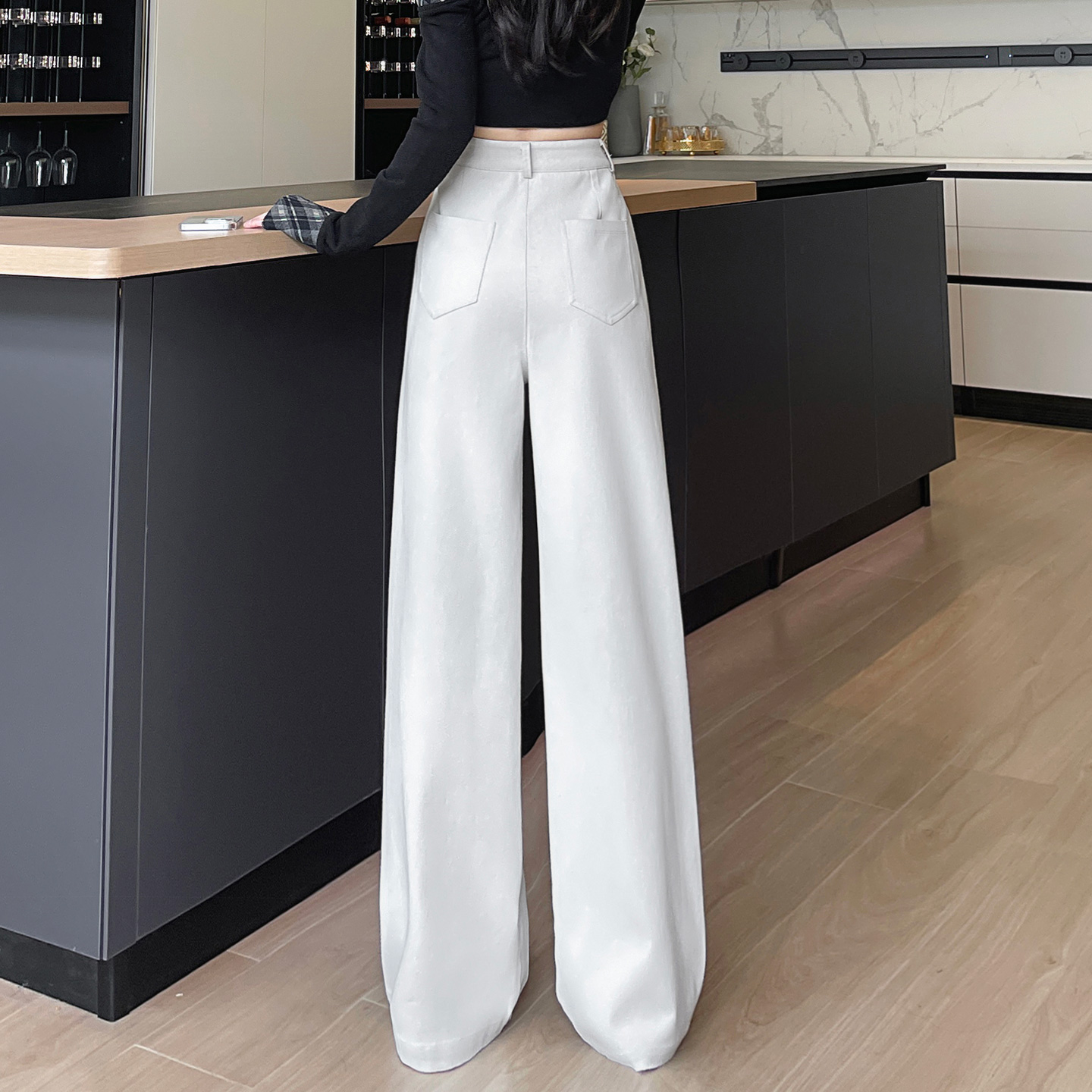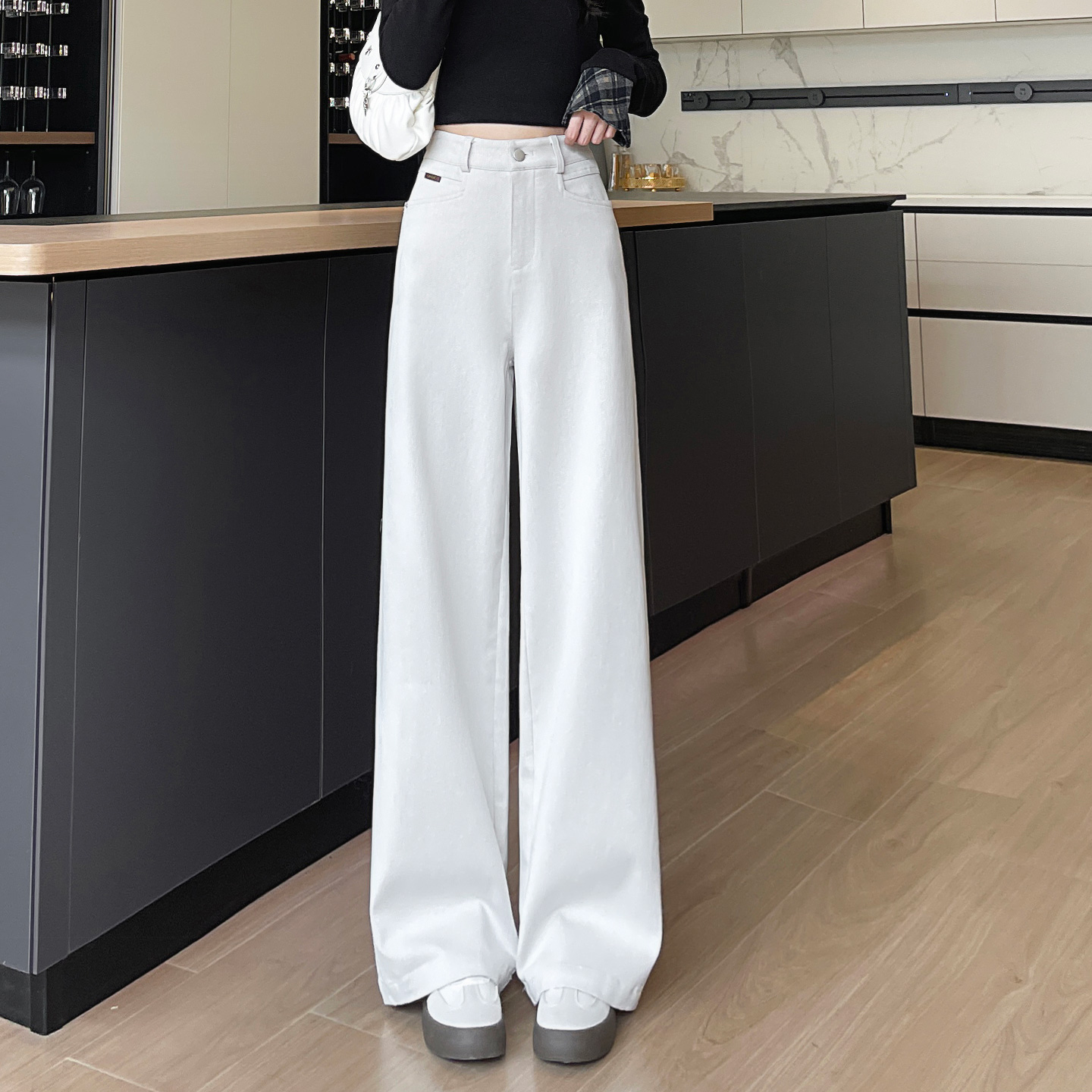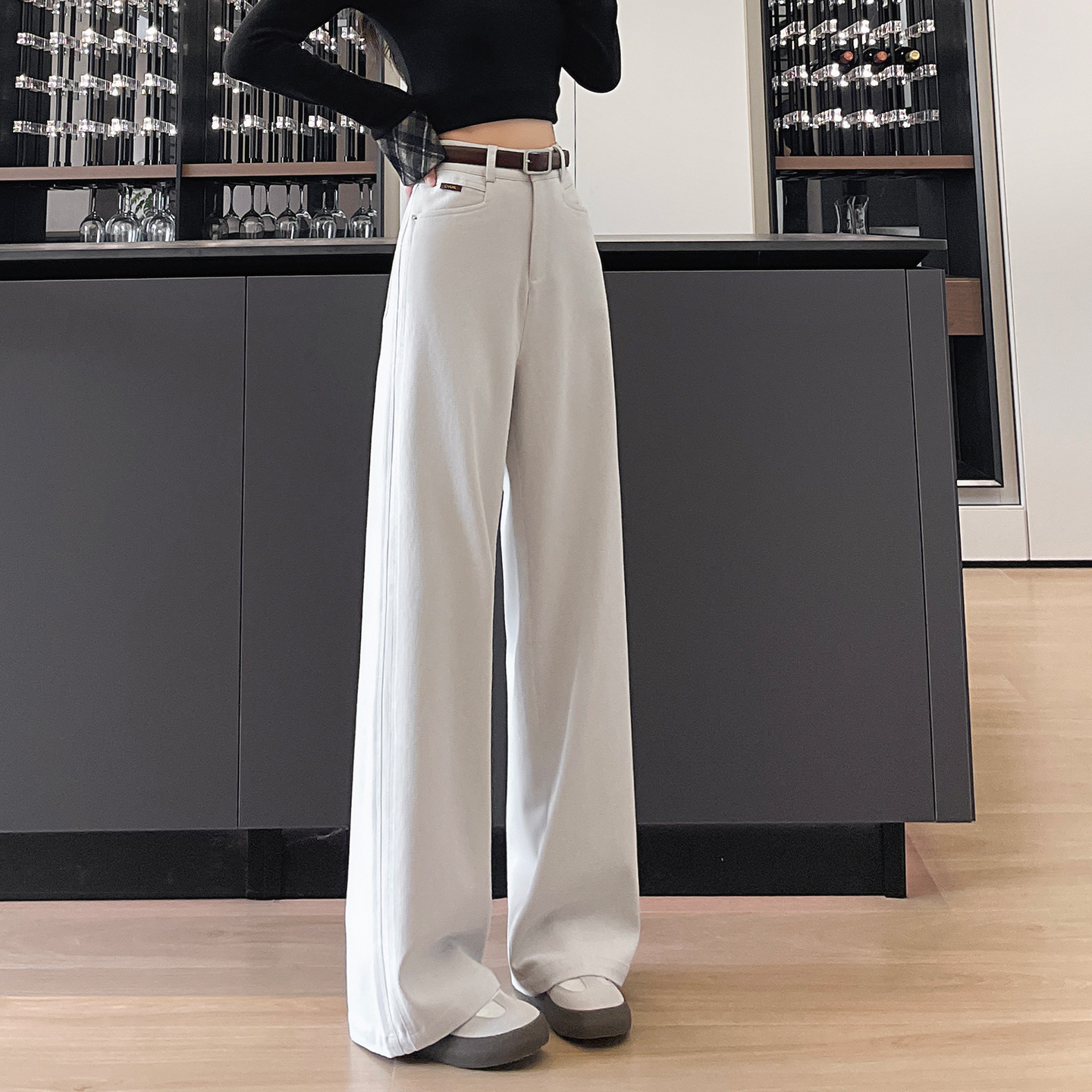 高腰直筒垂感阔腿宽松丹宁长裤 HM女装 新款 2025秋季 1261750 牛仔裤