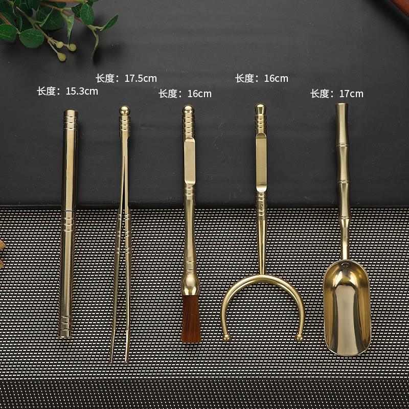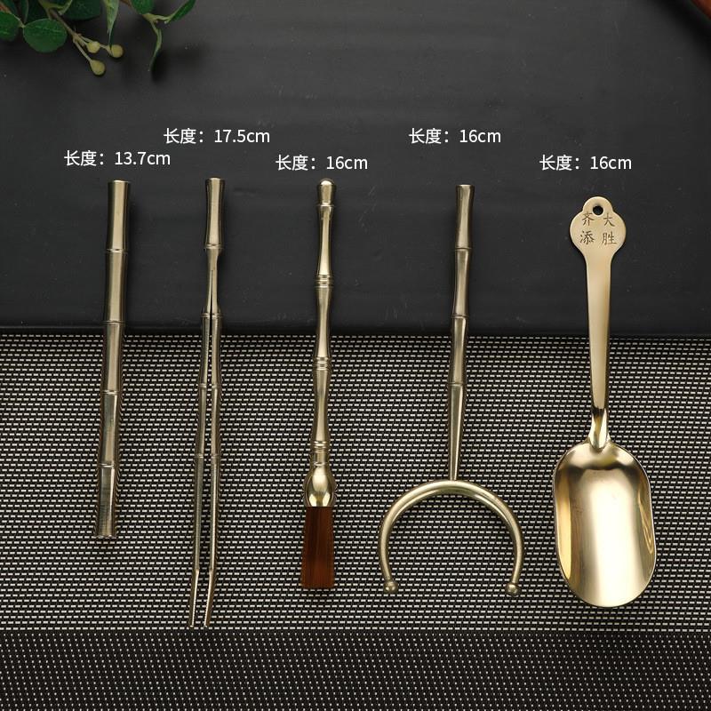 黄铜茶夹茶道六君子套装 茶刀茶勺功夫茶具配件养壶笔6君子
