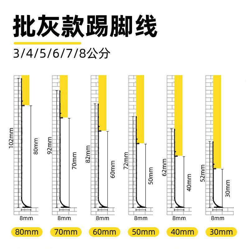 铝合金踢脚线4公分免开槽嵌入式 贴脚线6cm极窄金属内嵌隐藏地脚线