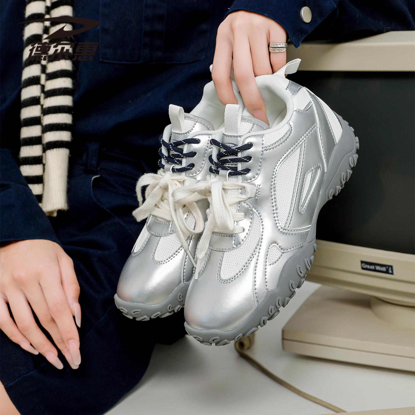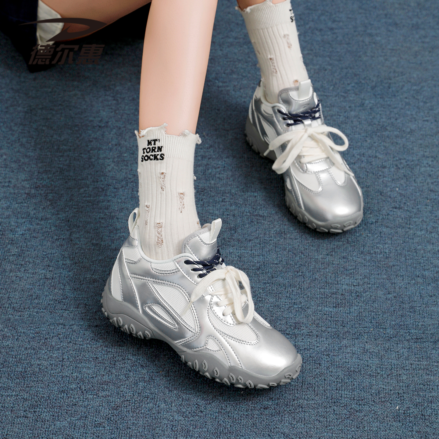 秋季 2025新款 爆款 女鞋 德尔惠银色复古德训鞋 子芭蕾休闲运动鞋 女款