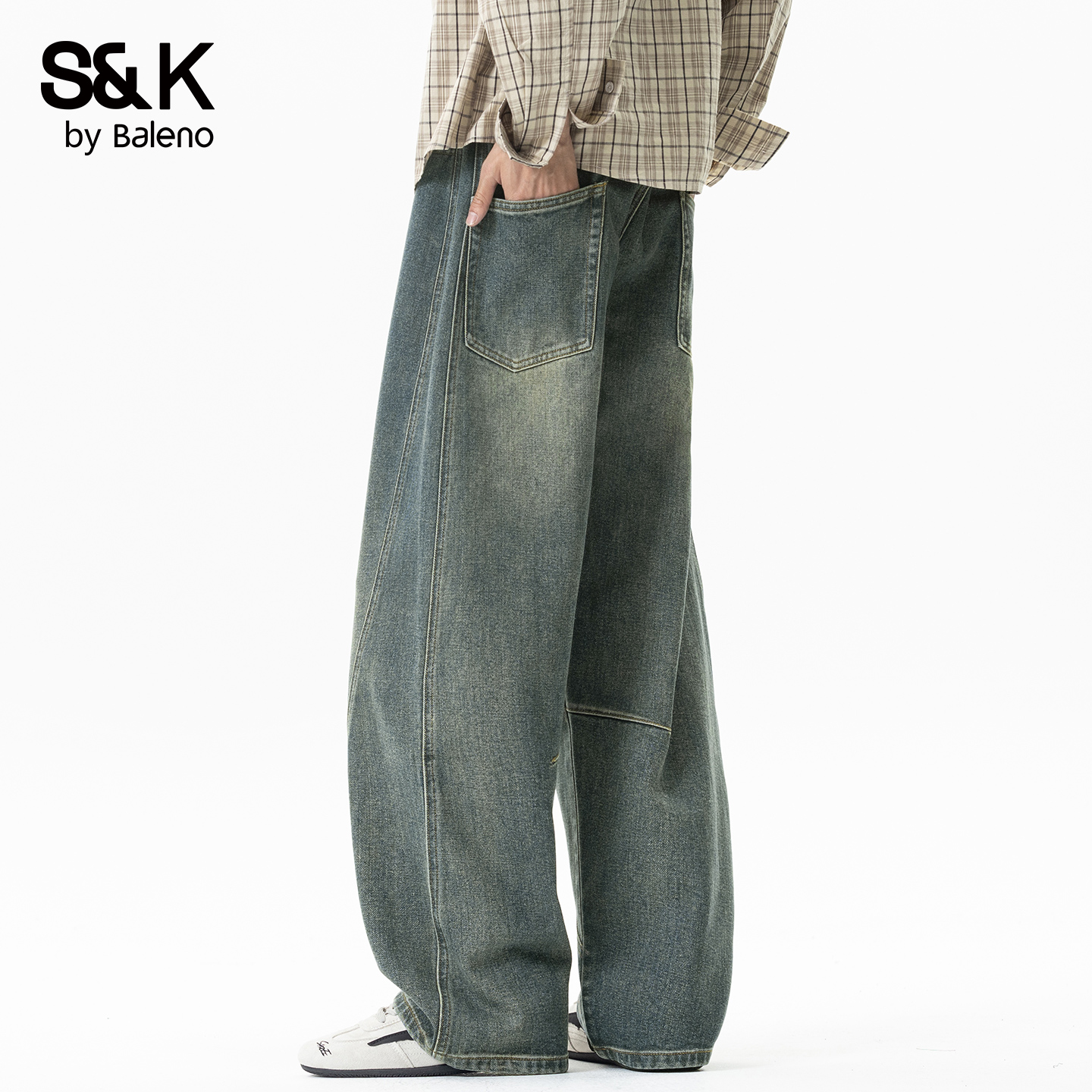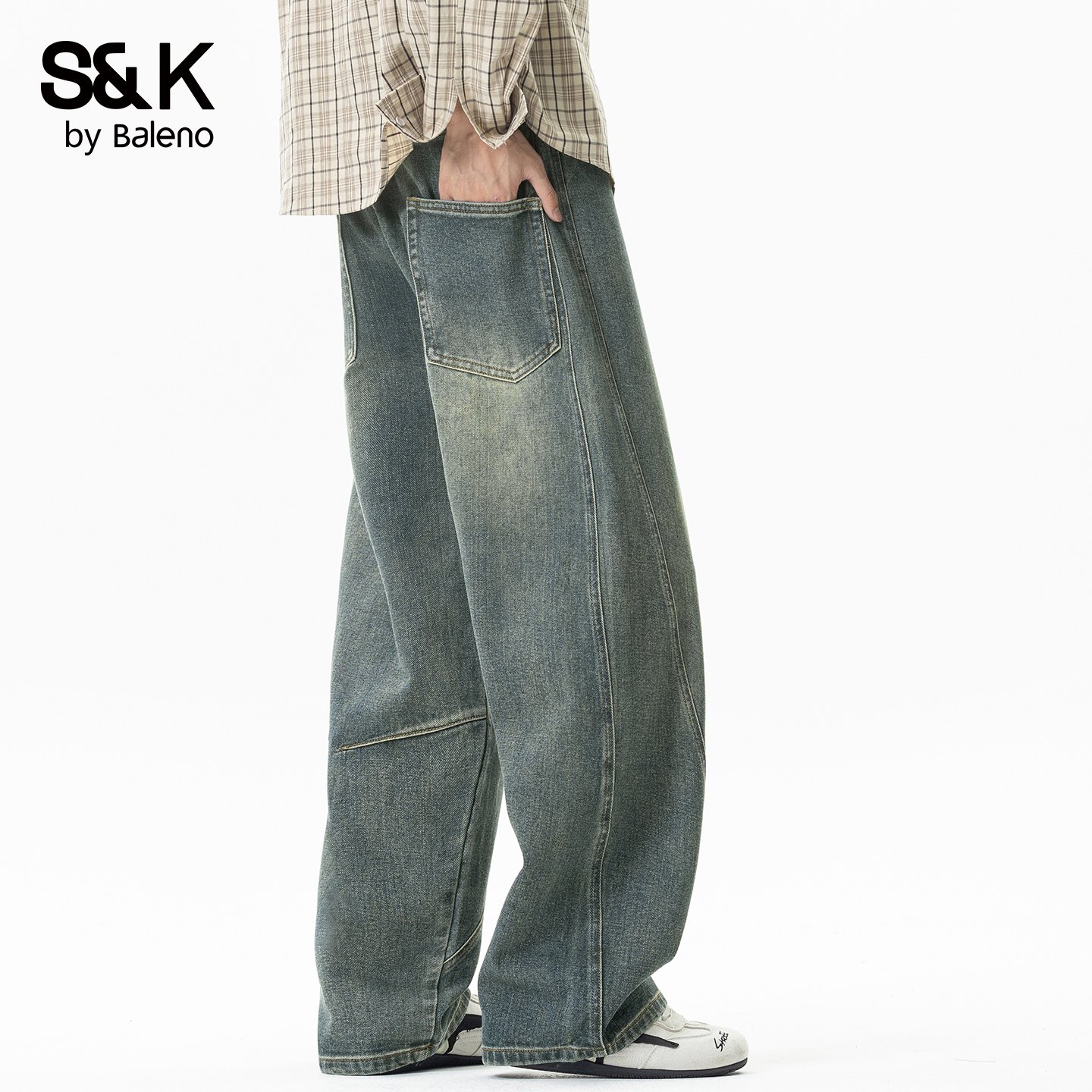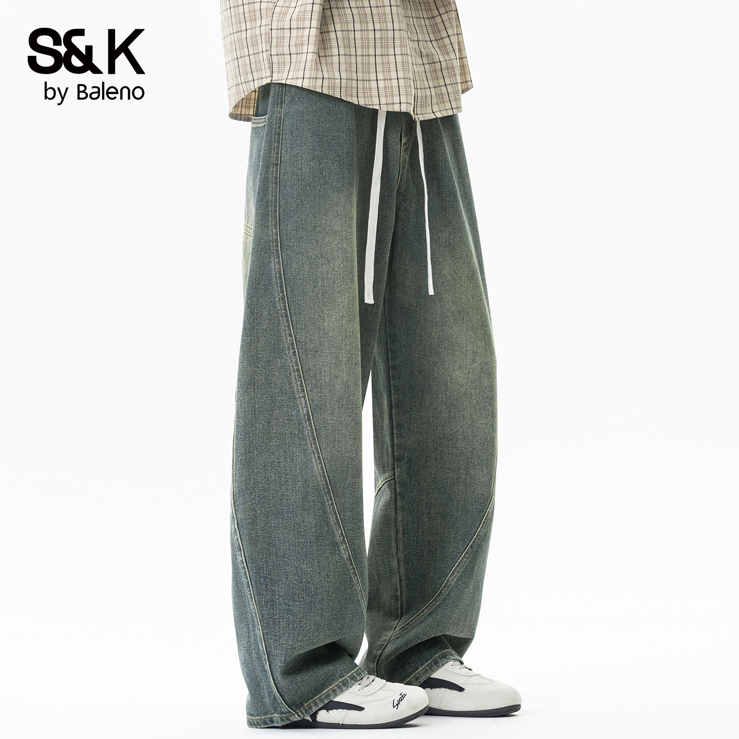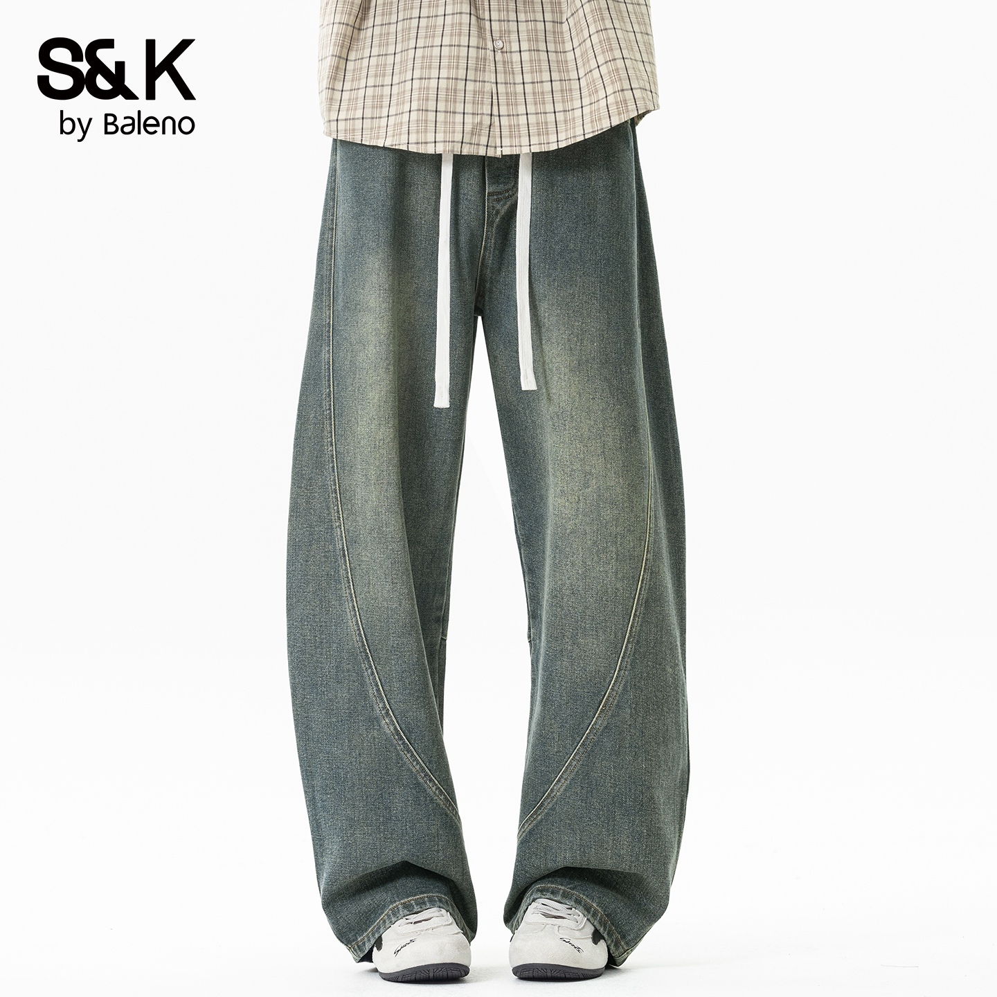 复古直筒宽松水洗潮牌宽松长裤 新款 子MS 男秋季 班尼路SK阔腿牛仔裤
