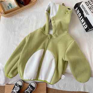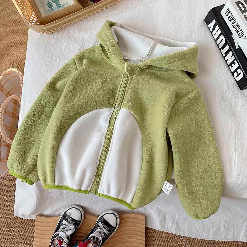 儿童宝宝绒男女保暖上衣加绒开衫 拉链恐龙造型外套潮普通外套V字