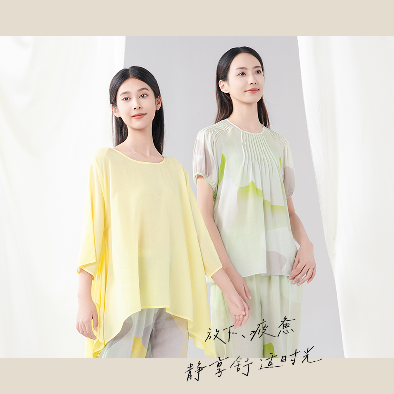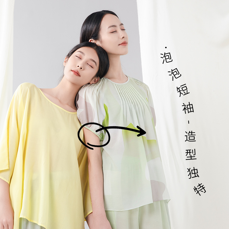 新款 100%桑蚕丝丝绸夏季 可外穿家居服 两件套装 真丝睡衣女春秋长袖