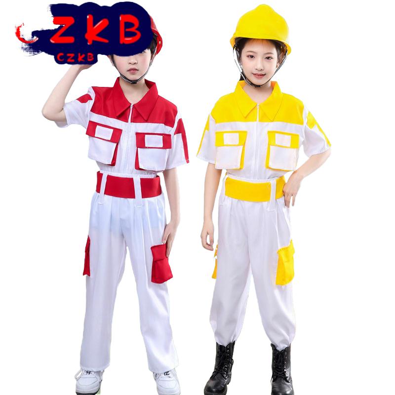 儿童工程师建筑工人服装 消防服电工维修员演出服修理工环卫工人服