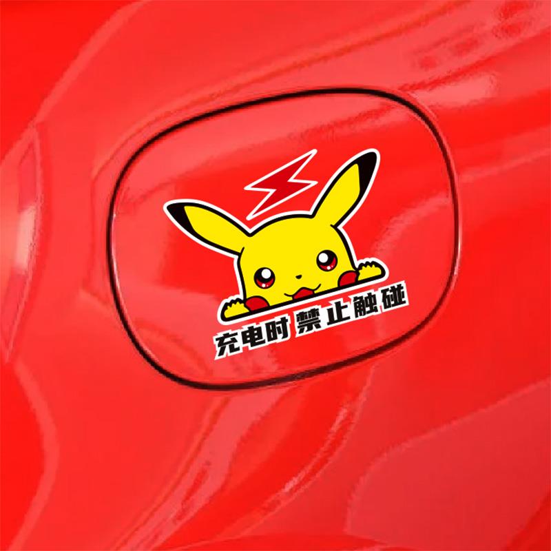 电动汽车充电口盖装 饰贴充电时请勿触碰提示贴电动车车身防水贴纸