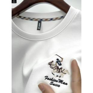 白色打底衫 秋冬季 潮流字母上衣服A t恤男2025新款 班尼路双面绒长袖
