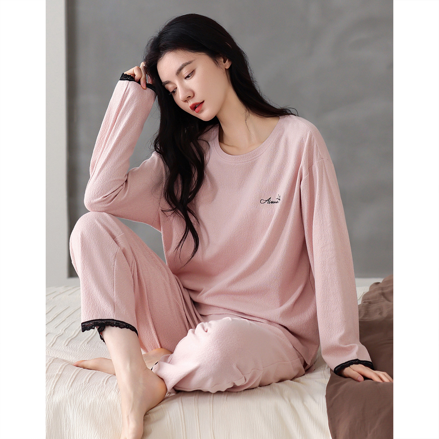 2025新款 秋季 秋冬可外穿防凸点家居服 纯棉长袖 带胸垫睡衣女春秋款