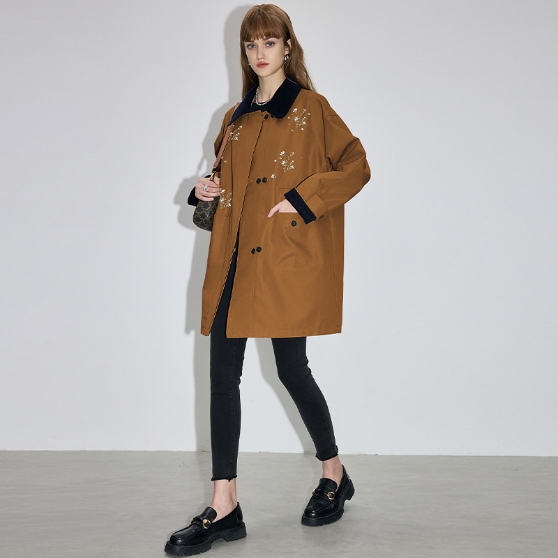 小个子风衣翻领夹克女装 唐狮25秋季 外套女生巴恩风高级感时尚