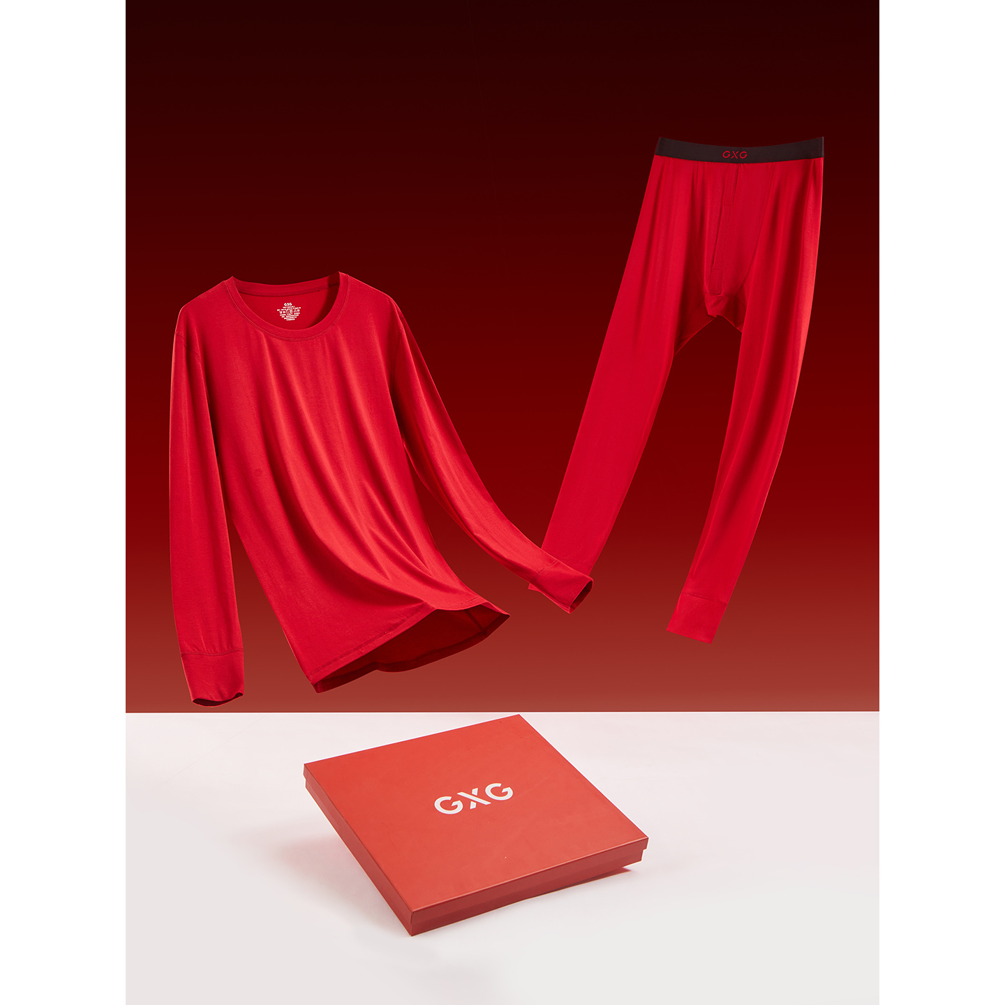 保暖舒适家居服礼盒装 红色本命年棉质男内衣套装 保暖内衣 GXG男士