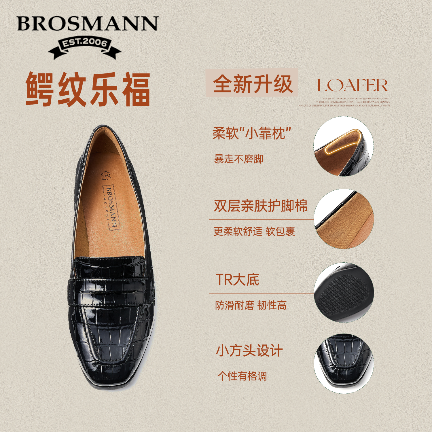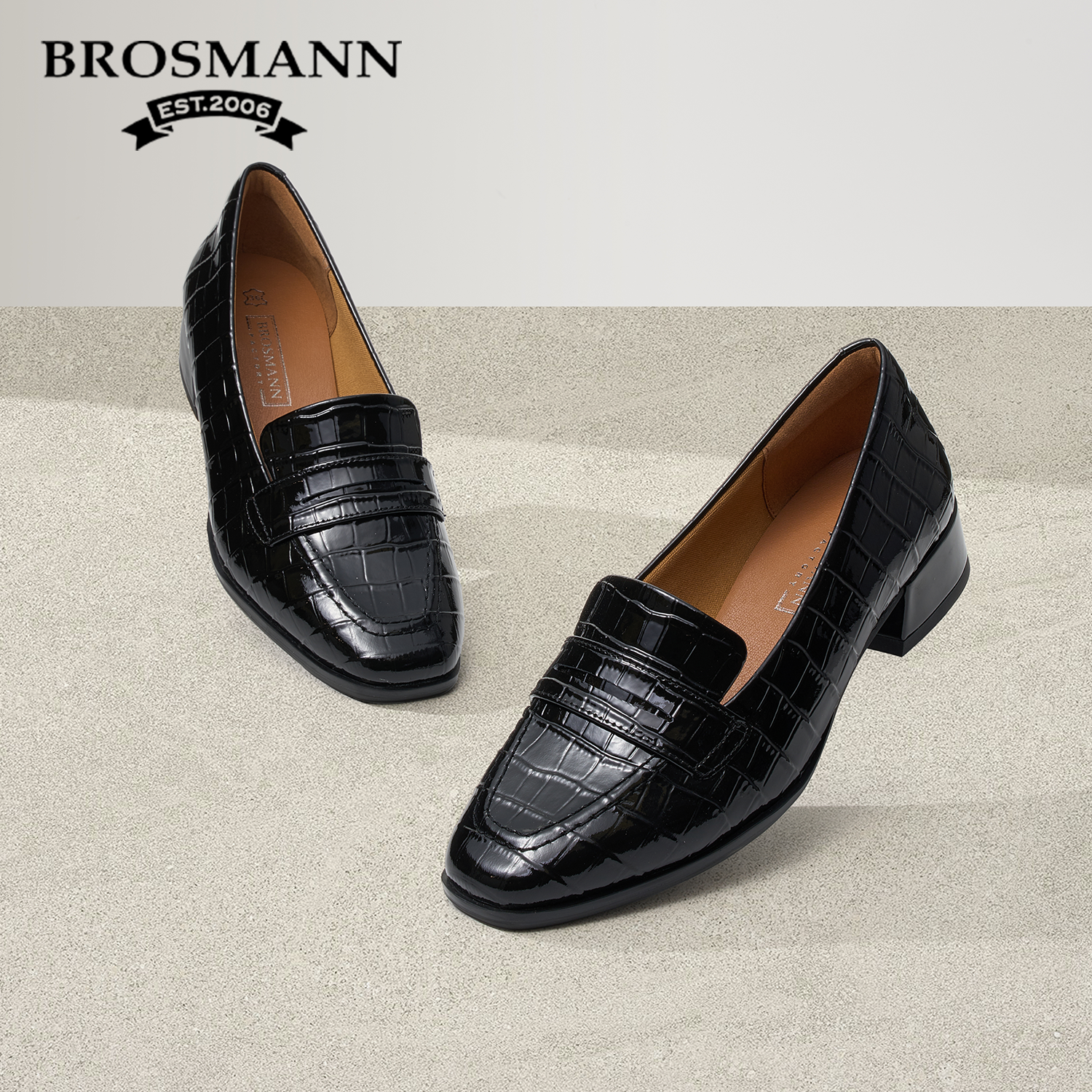 防水单鞋 BROSMANN宝舒曼乐福鞋 宽头黑色亮皮粗跟女鞋 2025新款 女款